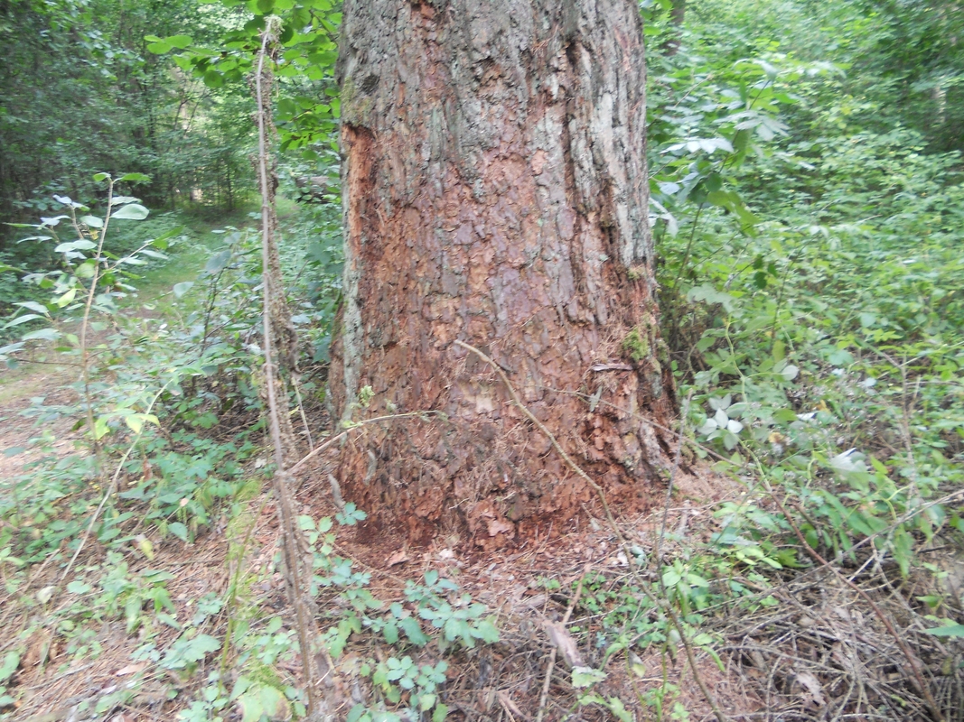 Medis auga septynių maumedžių grupėje, aplinkui daug šimtamečių pušų. Čia galima pajusti senos, galingos girios dvasią. Tarp medžių įspūdingai susiraitę reti augalai – didžiosios dantenės ir apyrečiai – kvapieji lipikai. Gaila, kad jie jau peržydėję.