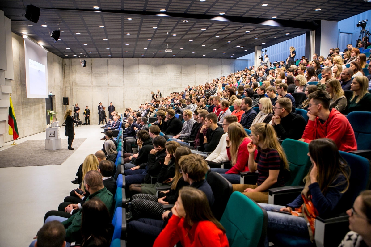 Atsiminimui: po susitikimo su KTU bendruomene garbi viešnia pasirašė svečių knygoje. Vilmanto Raupelio nuotr.