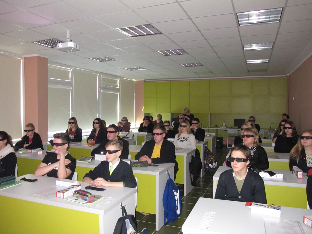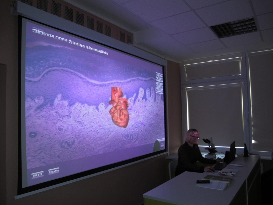 Pirmosios demonstracinės biologijos pamokos metu buvo parodyta erdvinė žmogaus širdies sandara bei visas širdies darbo procesas. 3D technologijos pagalba matomi erdviniai objektai ir jų įvairiapusė vizualizacija padeda įsisavinti ir suprasti pateikiamą informaciją daug greičiau ir efektyviau. Užsidėjus įkraunamus 3D akinius ir projektoriuje paleidus pasirinktą biologijos pamokos temą mokiniai galės pamatyti įvairių žmogaus organų sandarą ir veiklą, stebėti kaip vyksta ląstelių dalijimasis, fotosintezė bei išvysti kitus 3D biologijos mokomuosius objektus.