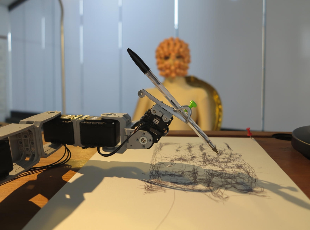 Kiekviena iš šių talentingų mašinų turi filmavimo kameros akį ir ranką, kuria piešia. Pasak Berlyno galerijos „Dixit Algorizmi“ savininko Peterio Braun-Himmericho, vieną portretą robotas nupiešia per maždaug 30 min.