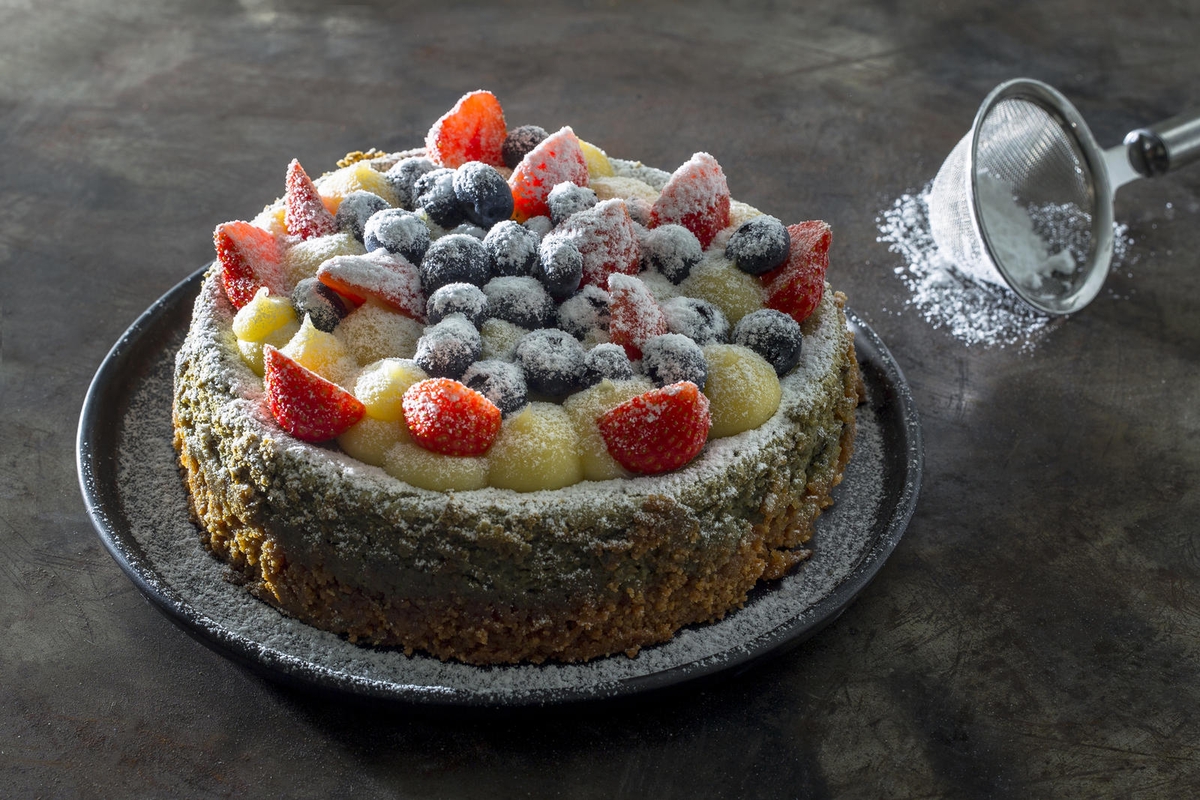 Sūrio pyragas su citrininiu kremu ir japoniška žaliąją arbata mača