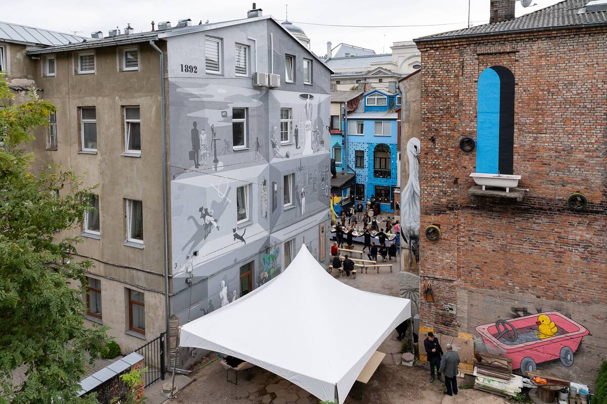 Šią vasarą šią galeriją po atviru dangumi papildė ir amerikiečių menininko Zano Hoffmano, pamilusio Kauną po apsilankymo jame, atvaizdas vadinamuosiuose paslapčių kambariuose, nutapytuose ant vieno šį kiemą juosiančių namų sienų. Žinoma, su vienu ryškiausiu savo įvaizdžio akcentu – įspūdingu kaklaraiščiu iš jo turimos šių kolekcijos, kurioje jų – daugiau negu 900.