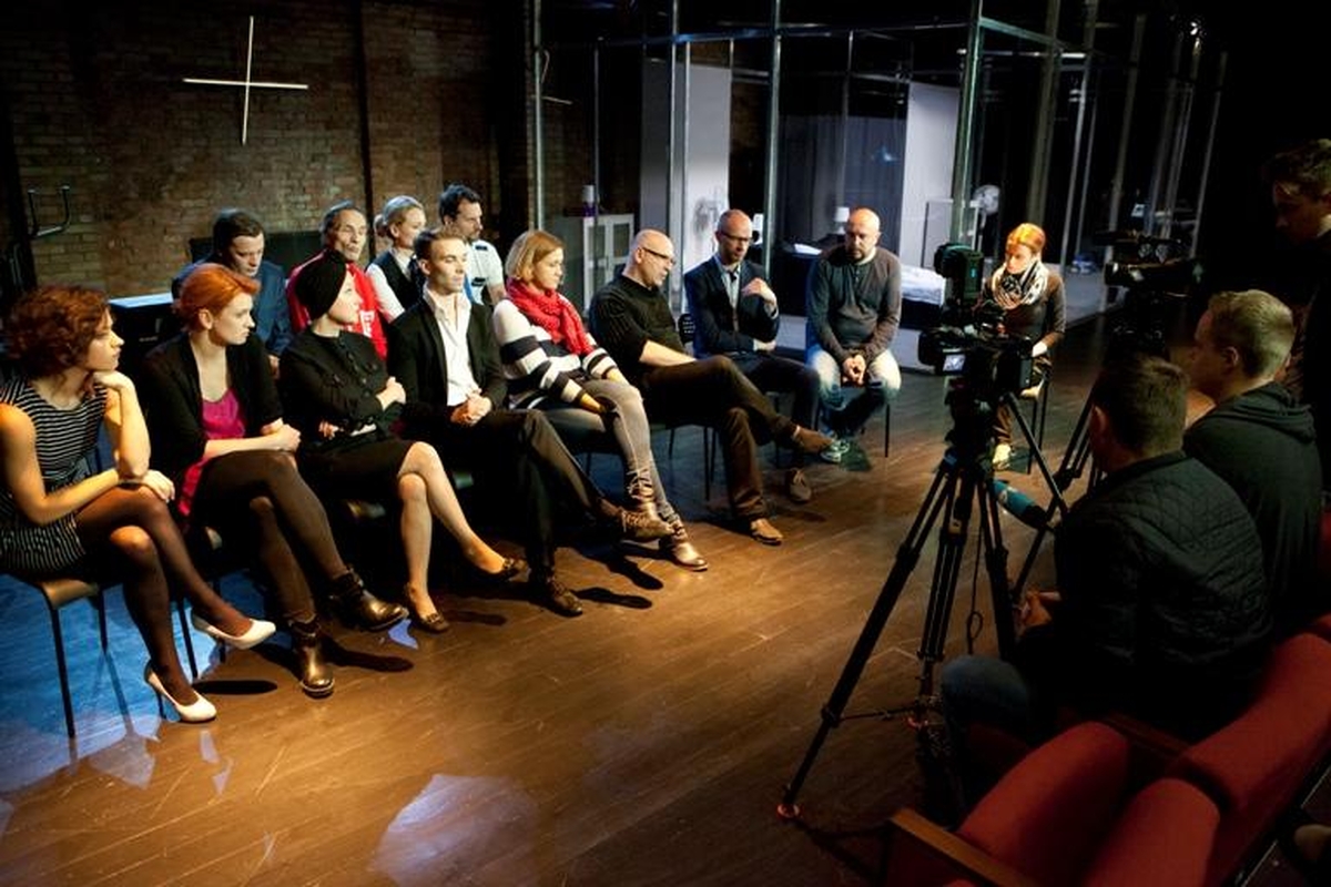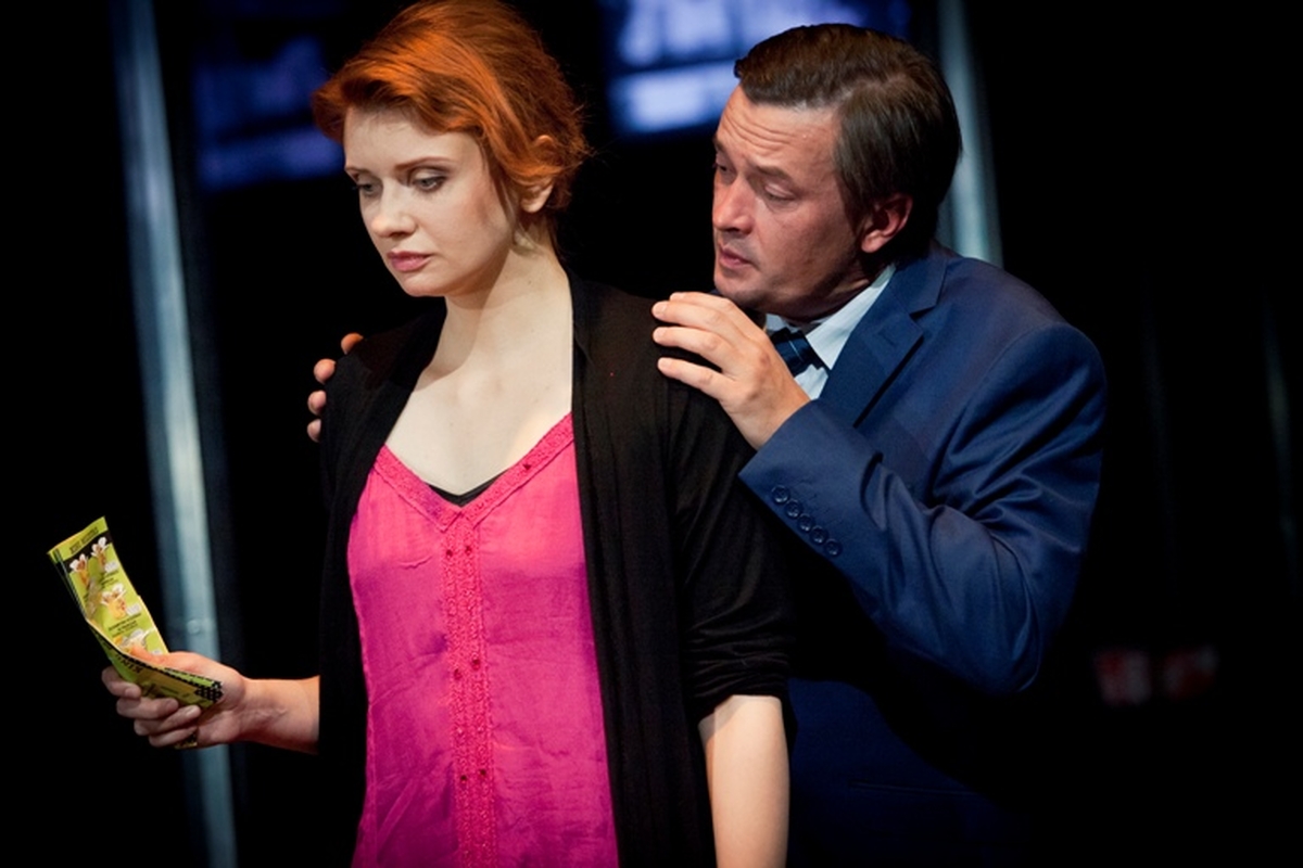 Spektaklyje vaidmenis kuria Gabrielė Aničaitė, Daiva Rudokaitė, Inesa Paliulytė, Inga Mikutavičiūtė, Sigitas Šidlauskas, Andrius Gaučas, Ričardas Vitkaitis, Henrikas Savickis, Neringa Nekrašiūtė, Mindaugas Jankauskas, Antanas Kurklietis ir Raimonda Šukytė. Viena iš užduočių, tekusių aktoriams, – minimalizuoti teatrališkumą, taip pat nevengti grotesko. Tokį spendimą, pasak režisieriaus, padiktavo pjesėje kuriama įtampa – visi pjesės personažai veikia atskirai, savo erdvėse, nepaisydami vienas kito.