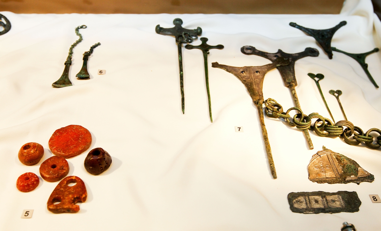 Parodoje eksponuojami ne tik ginkluotės pavyzdžiai, bet ir moteriški bei vyriški žalvariniai papuošalai, lipdytosios keramikos dirbiniai, audimo staklių moliniai pasvarai, geležiniai darbo įrankiai, suanglėję grūdai ir kiti unikalūs radiniai iš IX a.