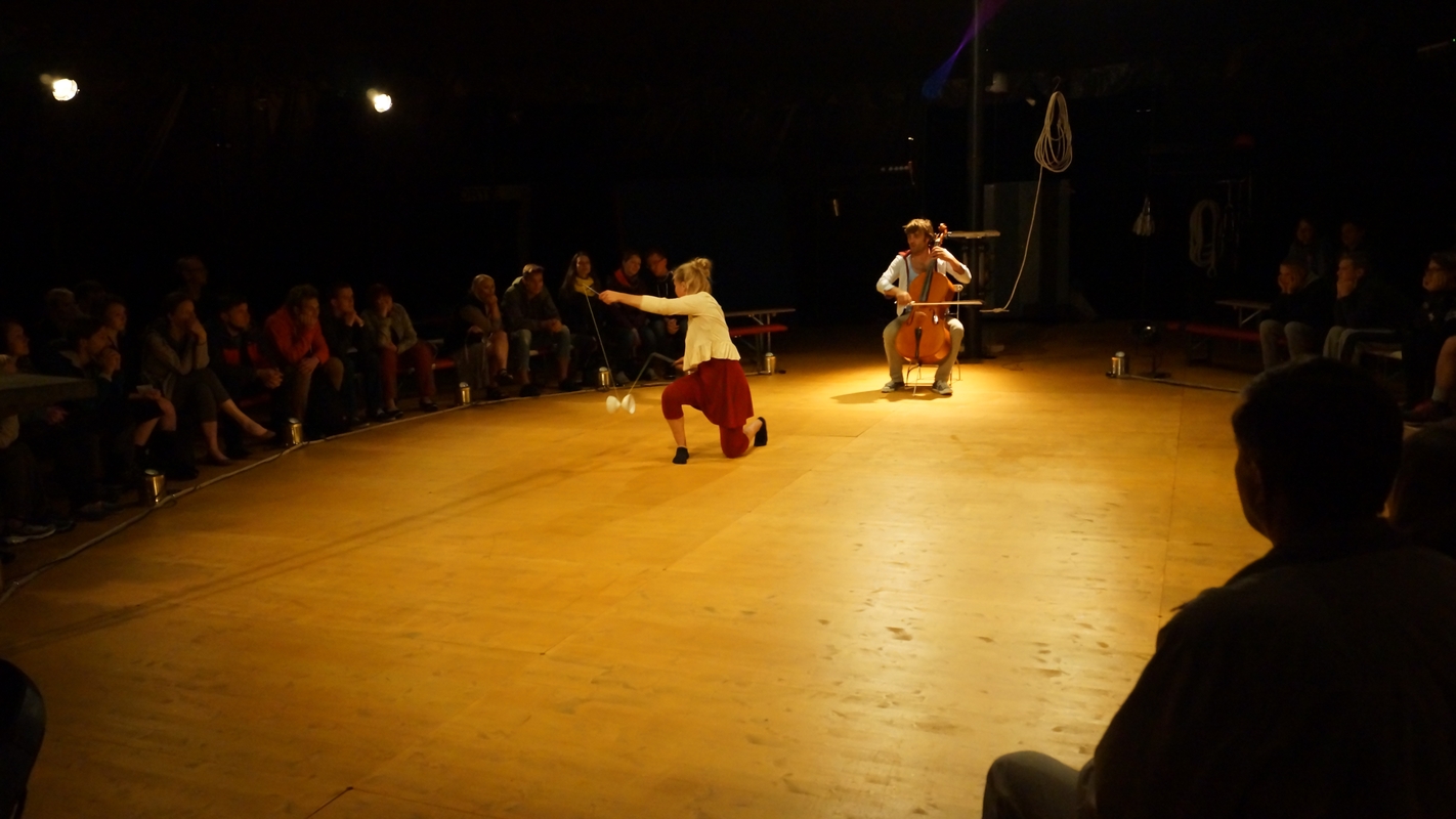 Analogiškai žvelgta ir į pasirodymų vietas, todėl vienas iš spektaklių vyko miegamajame rajone – t.y. ne prestižinėje reprezentacinėje kultūrinėje erdvėje, į kurią žmogus turi atvykti, bet pats kūrinys atvyko pas žmones. Nieko keista, kad, išvydę per langą, jog kažkas vyksta, vietos gyventojai atėjo ir domėjosi, kuo šįkart kultūra gali praskaidrinti kasdienybę. Kažin ar verta tuo perdėtai stebėtis, kas dar iš vaikystės atsimena tradicinius cirko pasirodymus, kokios nors rajono mokyklos stadione nutūpusias palapines. Gal todėl cirkas apgaubtas ne tik tos tradicinės keliaujančių artistų mistikos, bet ir gebėjimo būti šalia, arti ir dažniausiai kultūriškai perdėm nepretenzingo žiūrovo. Šiuolaikinis cirkas, jungdamas įvairias skirtingas technikas, sunkiai begali būti asocijuojamas tik su vaikystėje matytų klounų ar akrobatų pasirodymais, tačiau mistika ir gebėjimas būti šalia žiūrovo niekur nedingo.