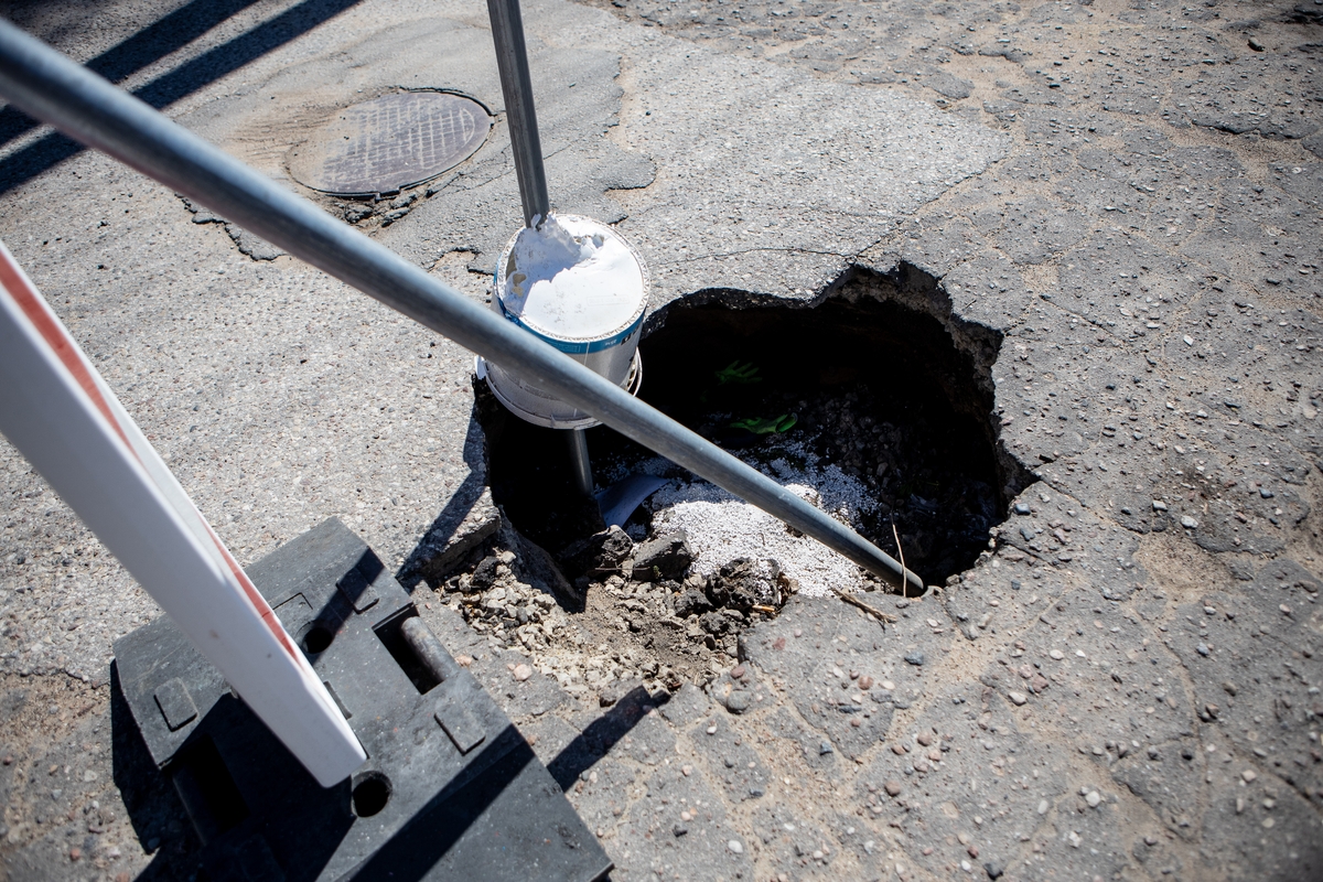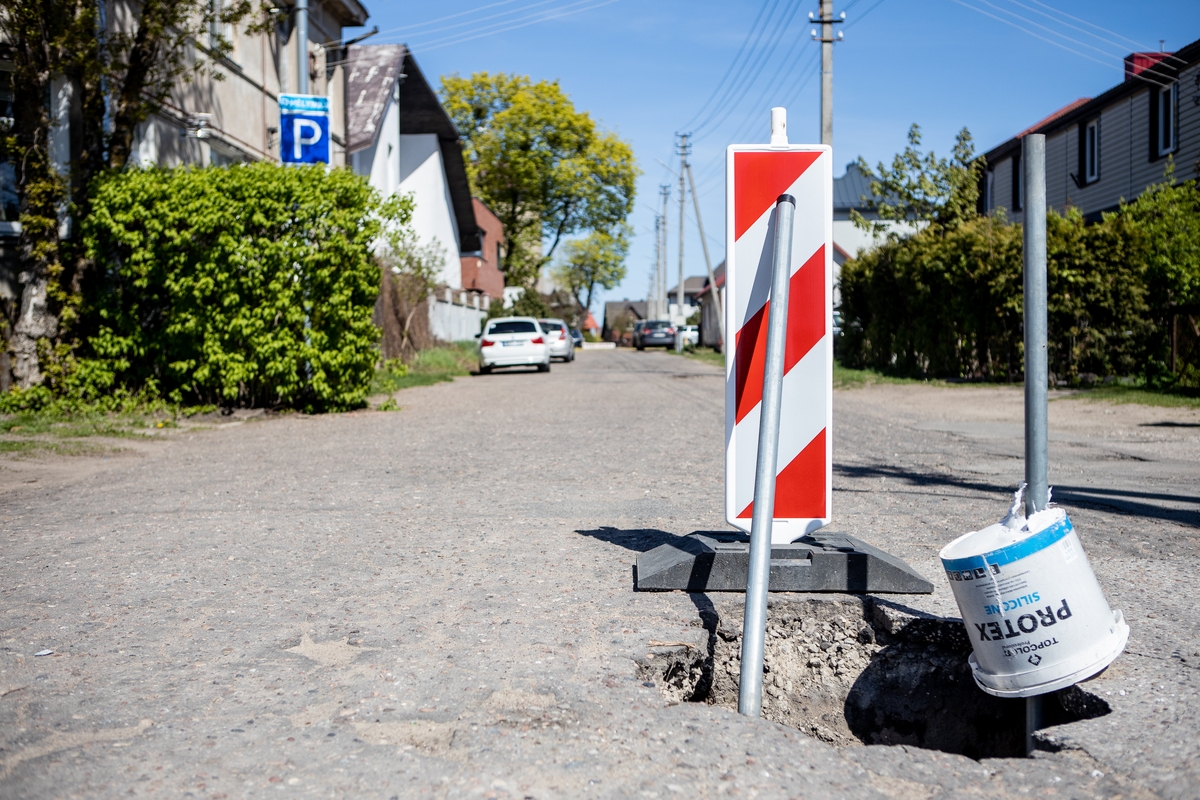 Greitai pastatė ženklus apie rinkliavos zoną, tačiau viduryje gatvės atsivėrusios duobės miestas nesugeba sutvarkyti jau mėnesį.