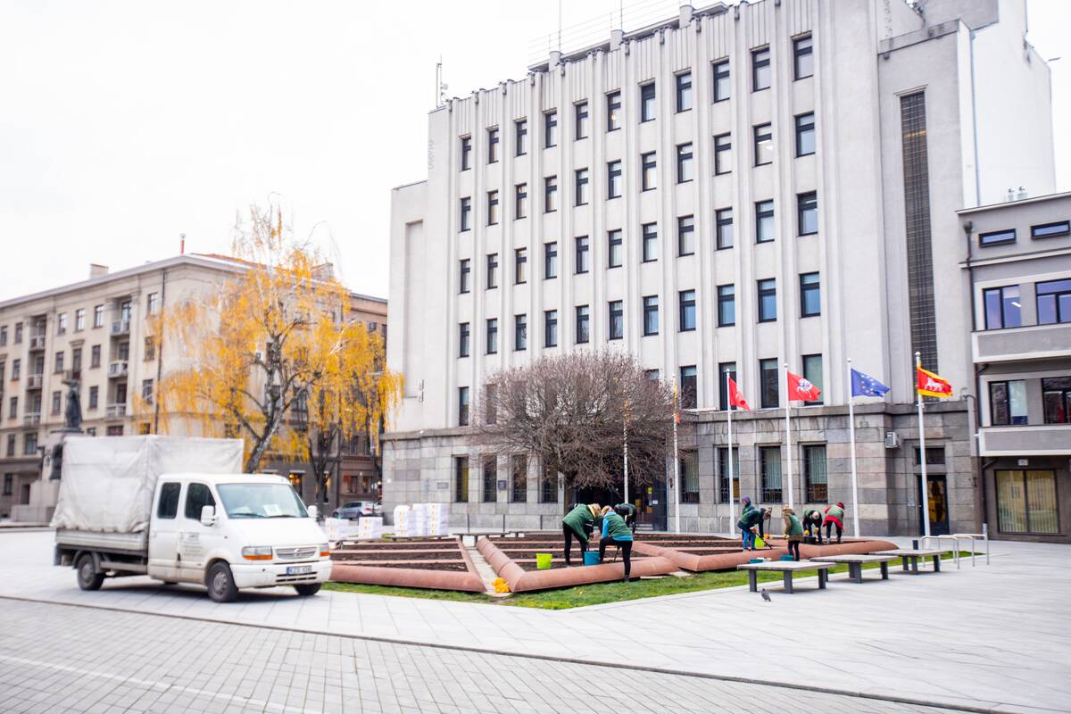 Nors šiuo metų laiku gėlių klombose gan tuščia, nėra žalumos, tačiau pavasarį čia bus tikrai visai kitas vaizdas. Darbininkai jau dabar sodina gėlių svogūnėlius ir komponuoja įvairias gėlių kompozicijas.