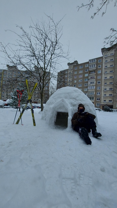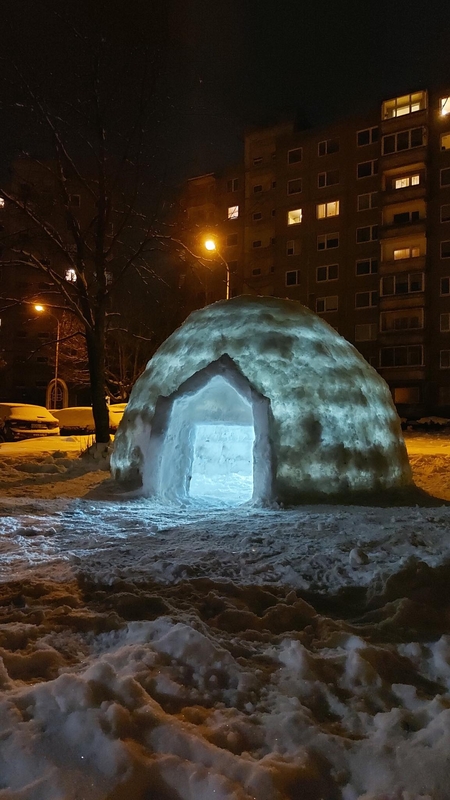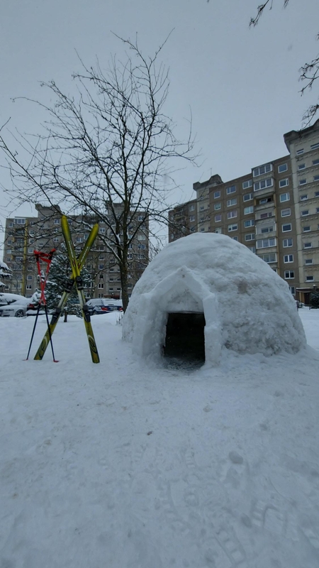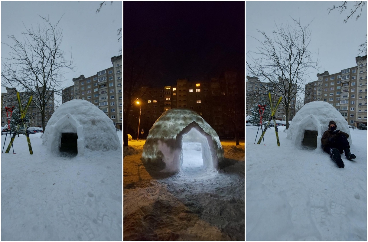 Prieš keletą žiemų teko padirbėti prie „senio besmegenio marozo“ kilusios idėjos, kurį su drauge buvome pastatę Šilainiuose. Tad šiemet, esant tinkamai žiemai bei šalčiui, kilo idėja, jog galime pabandyti pastatyti Igloo namelį“, – teigė Elvinas.