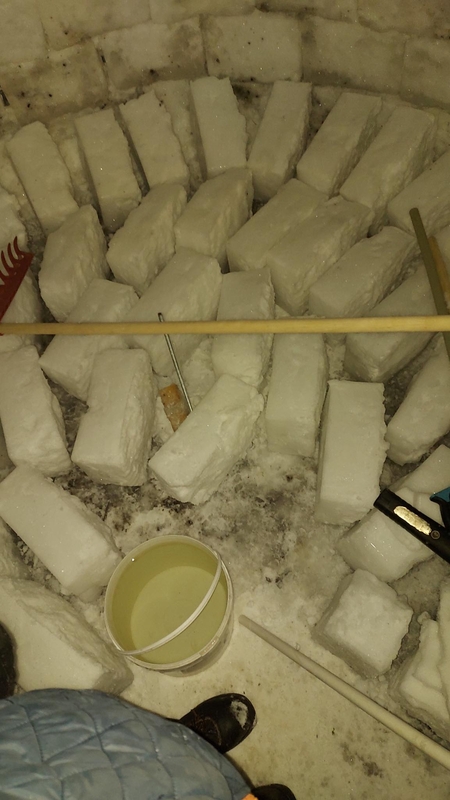 „Bet viskas užtruko keturias dienas, kasdien lauke praleidžiant bemaž po 12-14 valandų. Plytas gaminomės patys maišydami sniegą su vandeniu ir visą masę trombuodami rankomis.