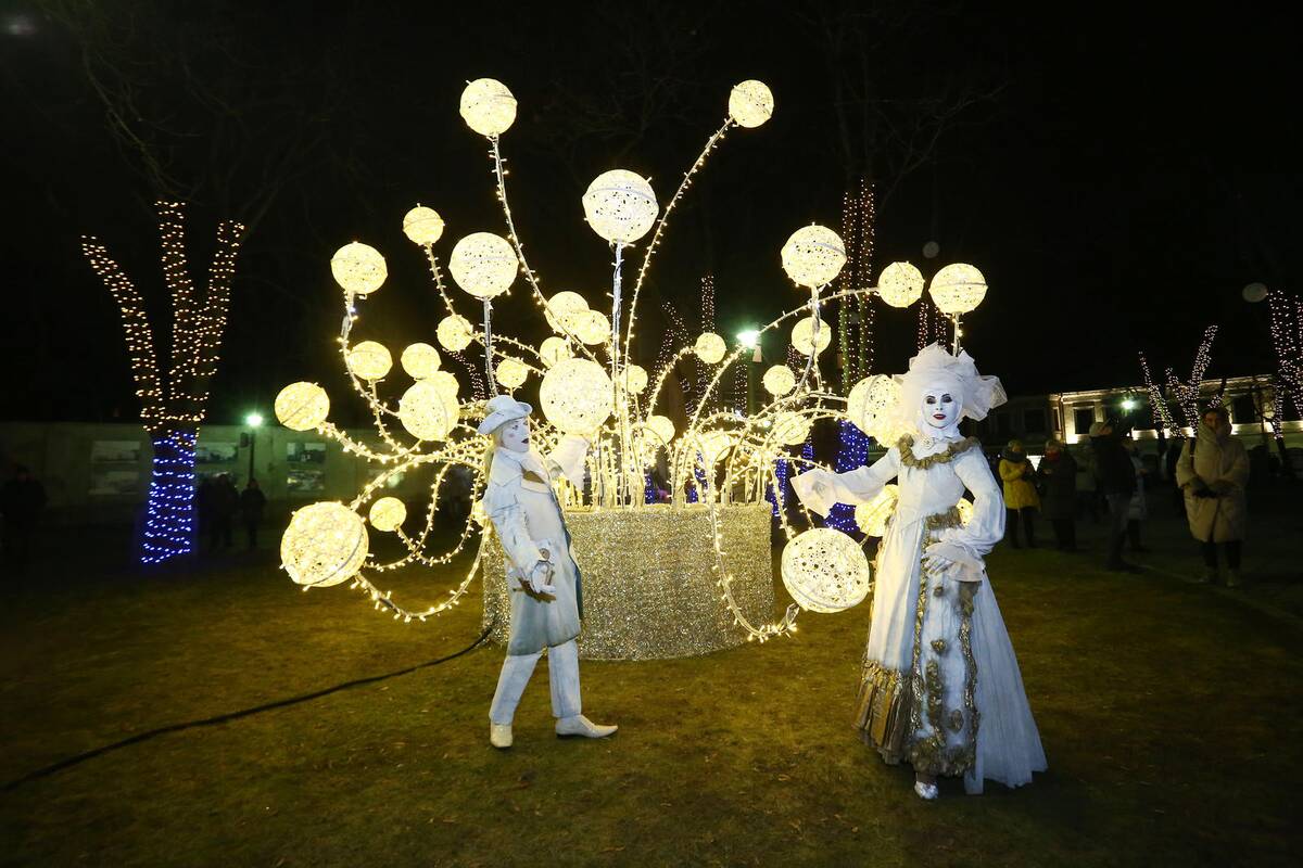 Net 5 tūkst. metrų ilgio lempučių girliandomis pasipuošė Istorinės Prezidentūros sodelio medžiai. Nostalgiški atsiminimų burbulai – dar vienas medžius dailinantis akcentas.