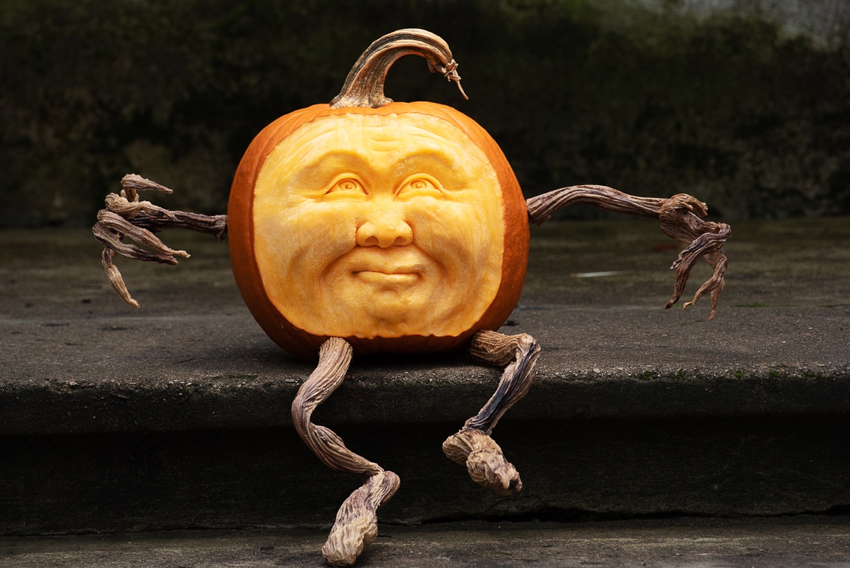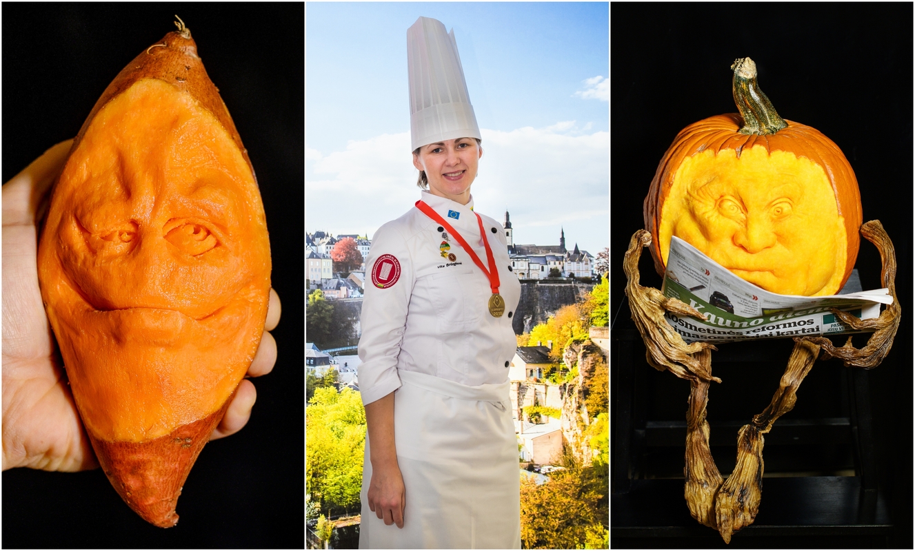 "Antrasis karantinas buvo lemtingas. Įvedus griežtus apribojimus, sumažėjus galimybių kur nors išvažiuoti, aplankyti draugus, atsirado daugiau laisvo laiko ir motyvacijos pamėginti darsyk. Be to, ir moliūgų nuo rudens dar buvo likusių. Prisipirkau jų iš Kauno rajono ūkininkų. Džiaugiausi atradusi tokią mėsingą rūšį, kuri labai tiko būtent veidukų drožybai", – pasakoja Kauno maisto pramonės ir prekybos mokymo centro profesijos mokytoja.