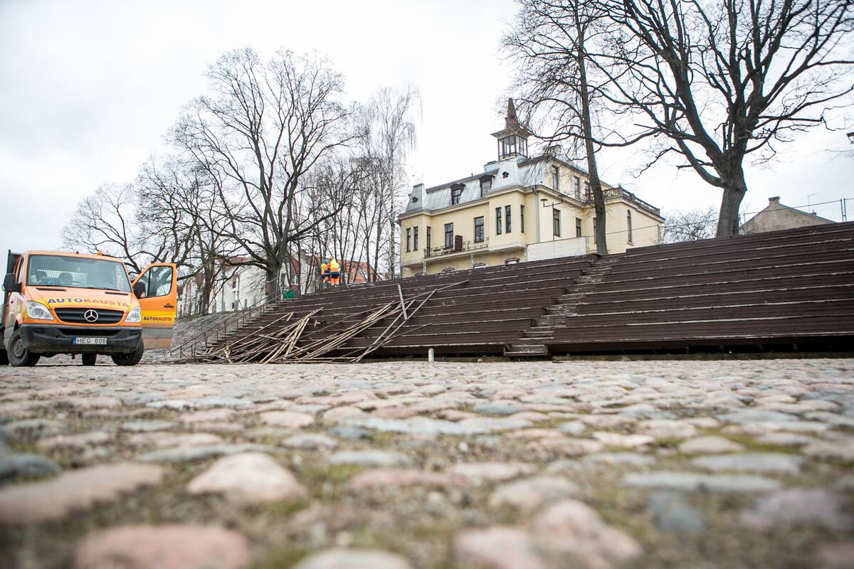 Tikimasi, jog sutvarkius tiek medinius suoliukus, tiek laiptų pakopas, į T.Daugirdo gatvę esantį amfiteatrą gelbėtojams dėl tokių nelaimių nebereikės važiuoti.