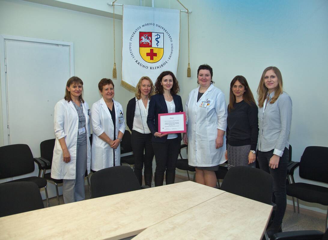 Antradienį Tarptautinės Vilniaus moterų asociacijos (IWAV) Tarybos pirmininkė Benita Guillaume su asociacijos tarybos narėmis įteikė Kauno klinikoms dovanų biopsinių adatų, naudojamų krūties vėžio radiologinei diagnostikai, ir krūties audinio žymeklių. Parama buvo surinkta organizuojant jau septintąjį iškilmingą „Sužydėjusios vilties“ vakarą Vilniuje.