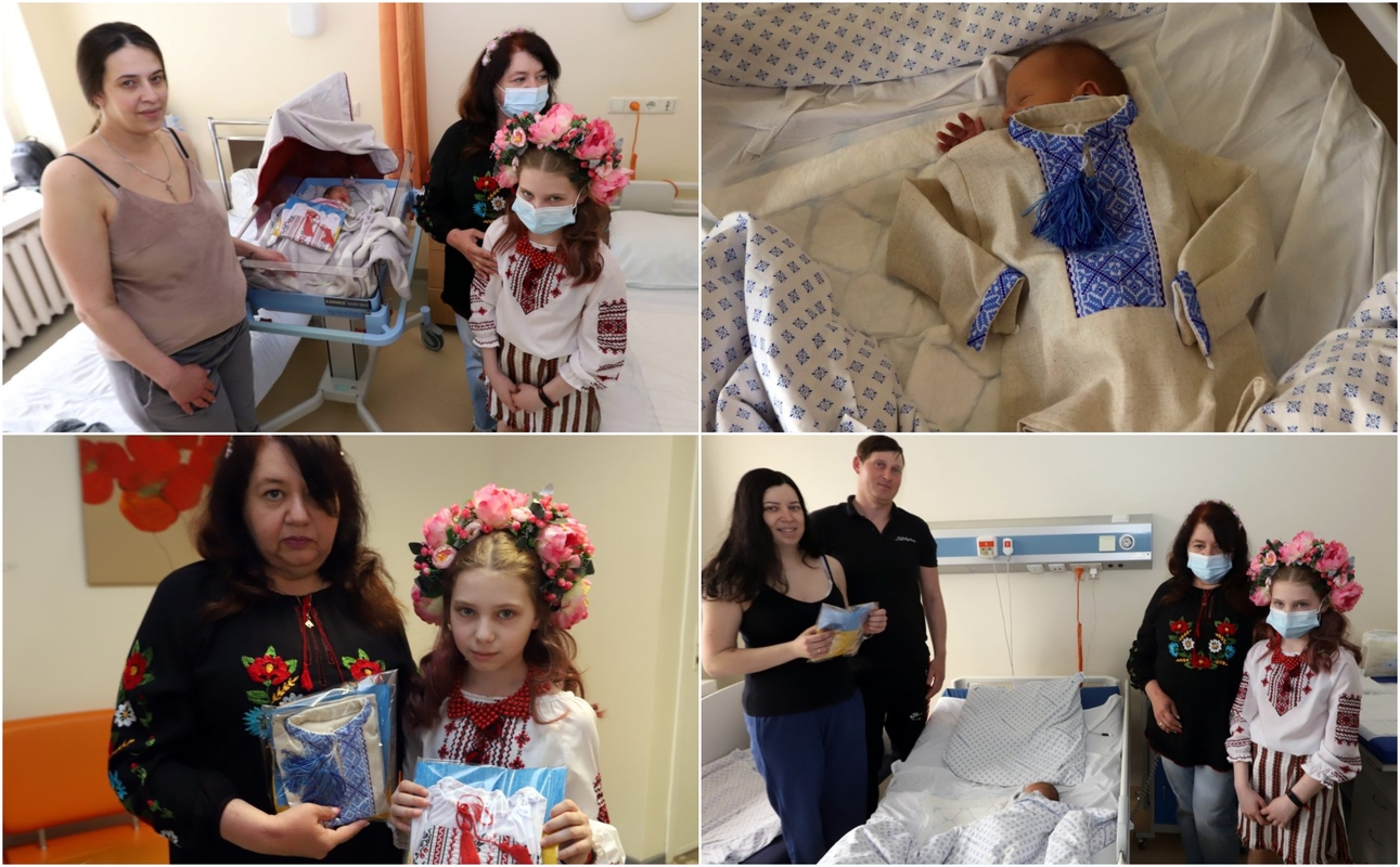 „Šie marškinėliai – iš Kyjivo. Septyni berniukiški, septyni mergaitiški – skiriasi raštai“, – sakė su dovanomis Klinikose gimdyves aplankiusi Ukrainos sėkmingų moterų klubo atstovė Viktorija Krasiukova. Ji pasakojo, kad su dukra Rastislava pati bėgdama nuo karo iš namų pasiėmė labai nedaug daiktų, tačiau tarp jų buvo būtent vyšyvankos.
