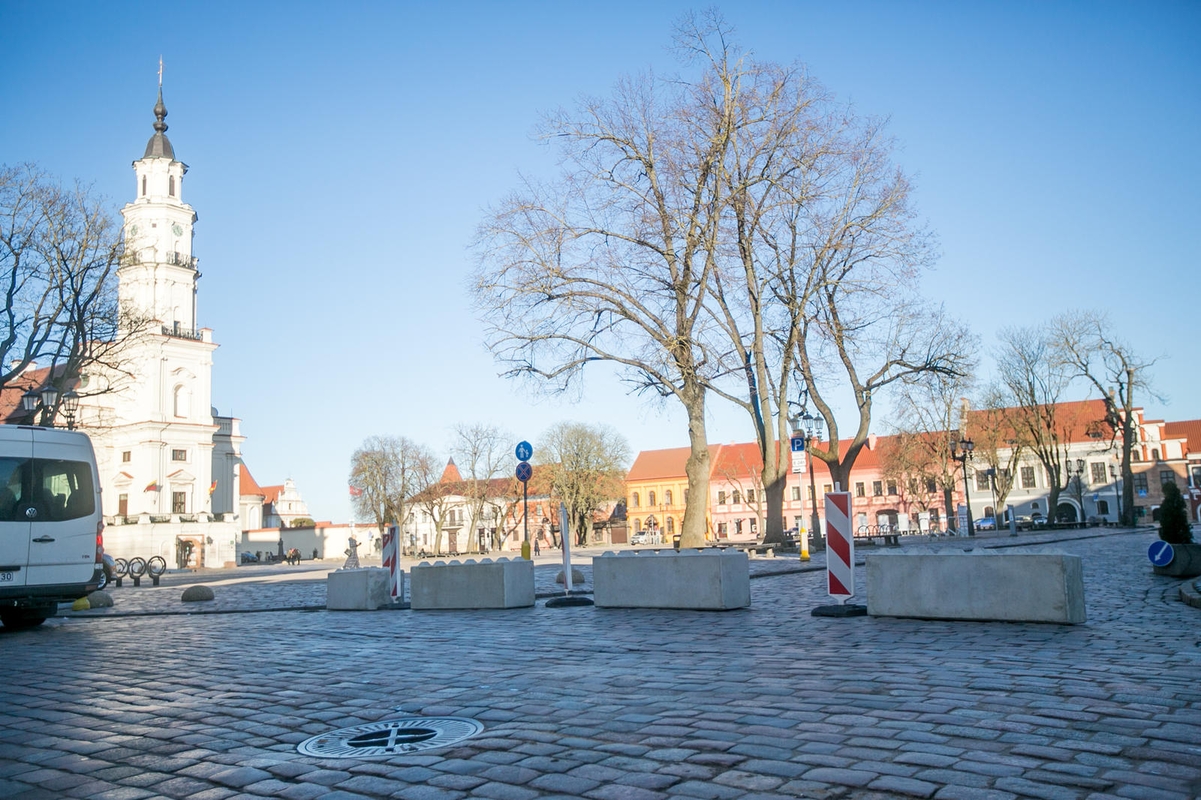 "Kauno dienos" skaitytojai teiravosi, kada Rotušės aikštėje bus grąžinta įprasta eismo tvarka, kai viena kryptimi būdavo galima apvažiuoti visą aikštę. Pasak kauniečių, nėra įprasta vairuotojams atvažiavus nuo Muitinės gatvės, važiuoti tiesiai, nes pasukti vis dar neleidžia ant gatvės sustatyti blokai.