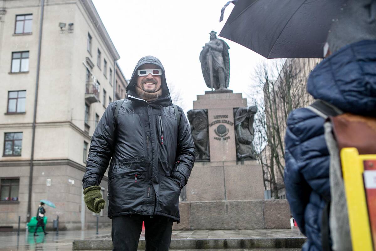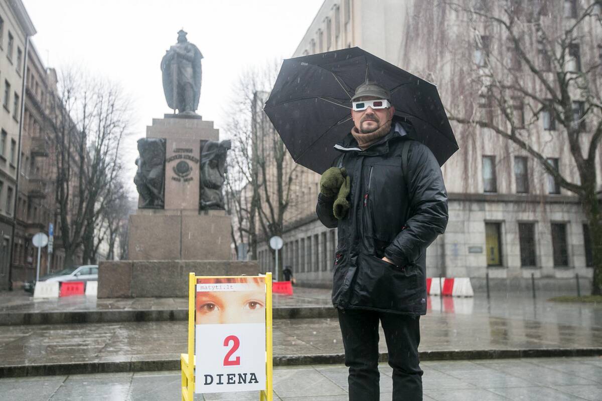 Akcijai prie Vytauto Didžiojo paminklo V.Jakas pasirinko mėgstamiausią geltoną spalvą.