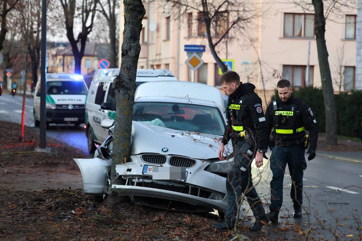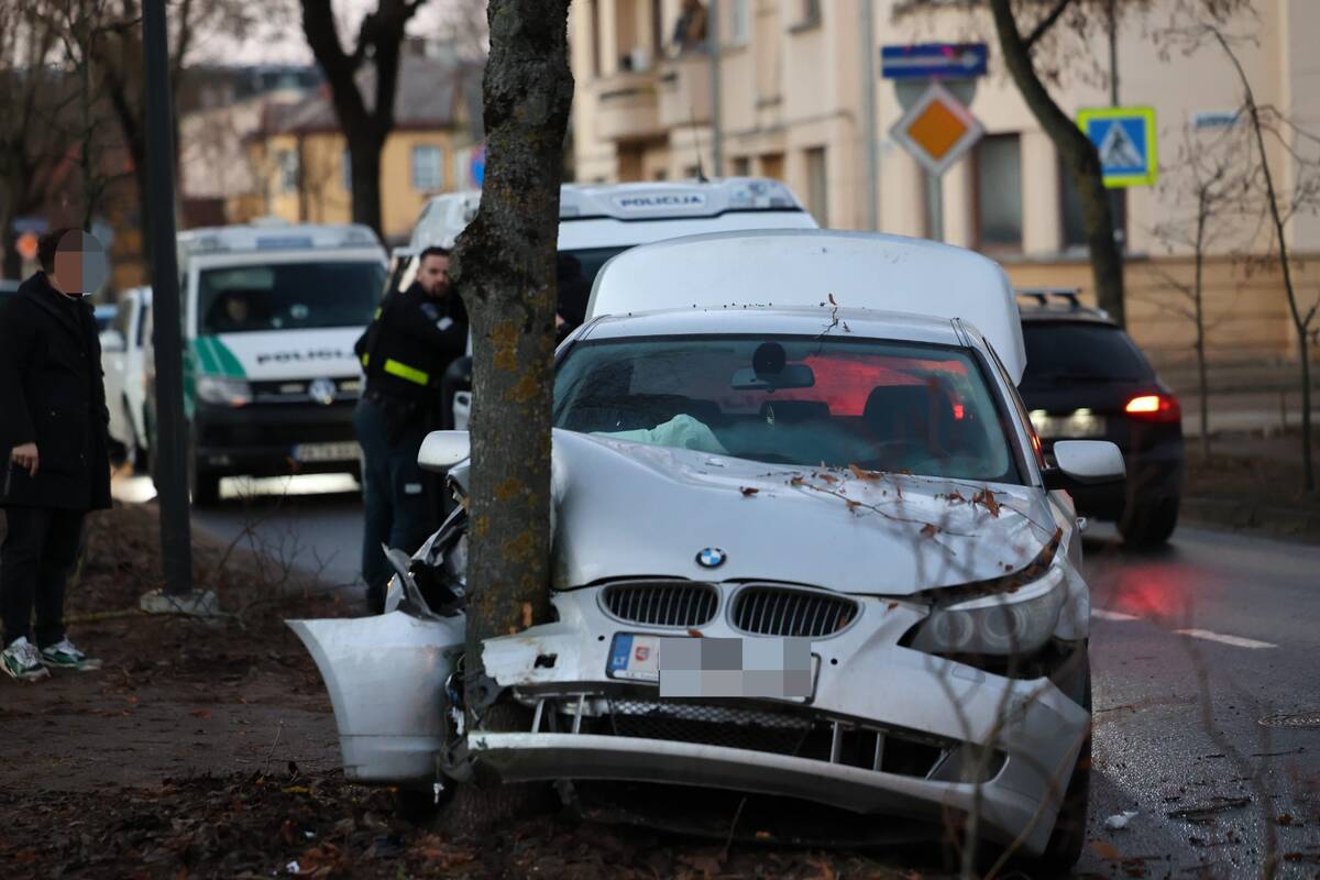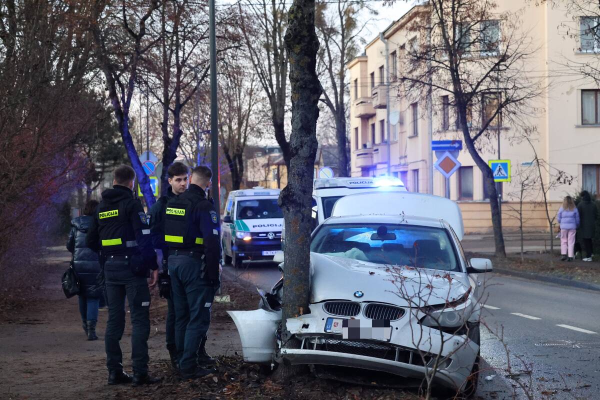 Antrąją šv. Kalėdų dieną Kaune, Žaliakalnyje, BMW trenkėsi į medį.