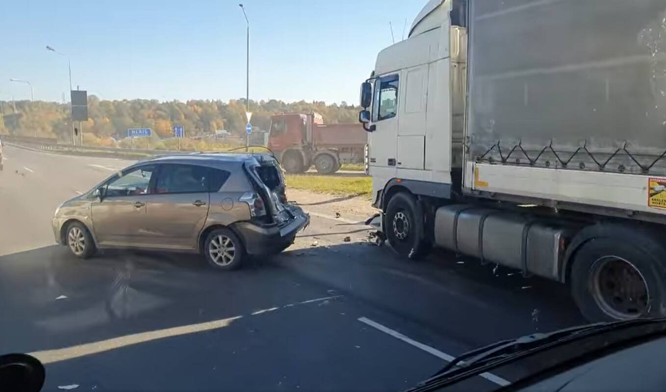Kauno policijos duomenimis, susidūrė vilkikas ir lengvasis automobilis „Toyota“. Žmonės per avariją nenukentėjo.