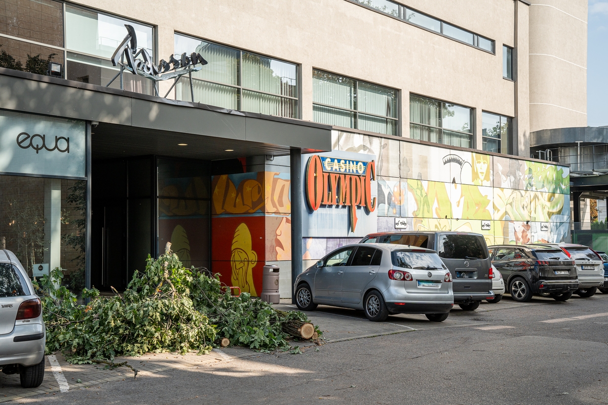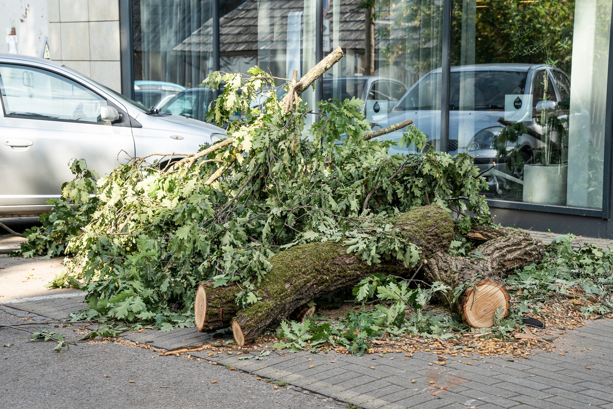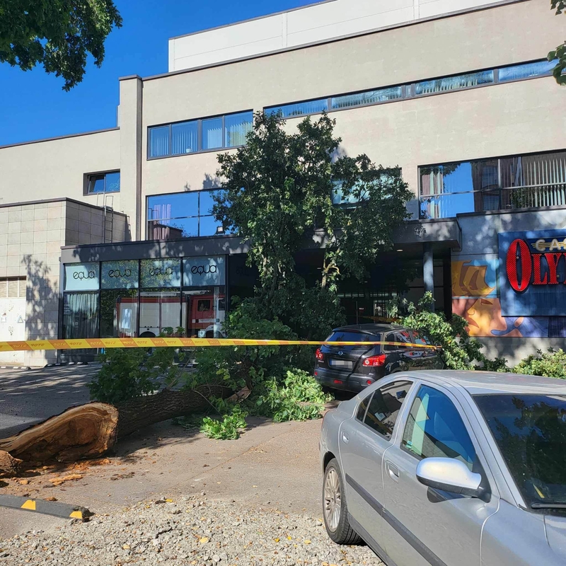 Atvykus į nelaimės vietą rastas ant lengvojo automobilio „Nissan Qashqai“ užvirtęs medis. Jis taip pat apgadino viešbučio „Radisson“ fasadą, sulaužė reklaminį stendą, apgadino pastogės skardinę apdailą ir kelio ženklą.