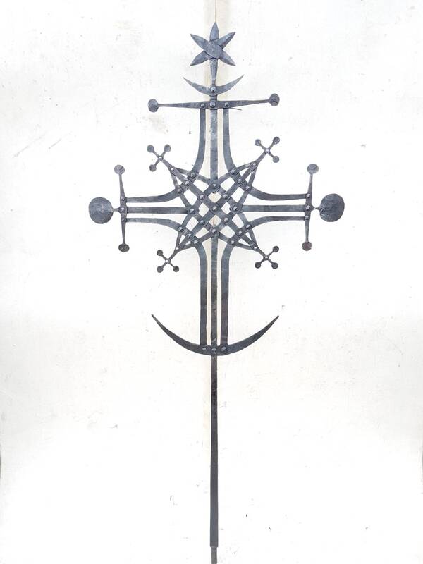 Tad ir kalvio V.Mikuckio autorinė paroda „Kalviškoji kryždirbystė. Geležinės saulės“ šitaip pavadinta neatsitiktinai. Kalvis pasakojo, kad prieš gamindamas kryžius piešia idėjų eskizus. Kruopščiai aiškinasi vietovės, kurioje bus statomas kryžius, ypatumus. Nevengdamas šiuolaikinių technologijų savo darbuose, stengiasi vadovautis senosiomis kalvystės tradicijomis. Jo metalo kryžiai traukia akį įvairių pagoniškų ir krikščioniškų simbolių gausa.