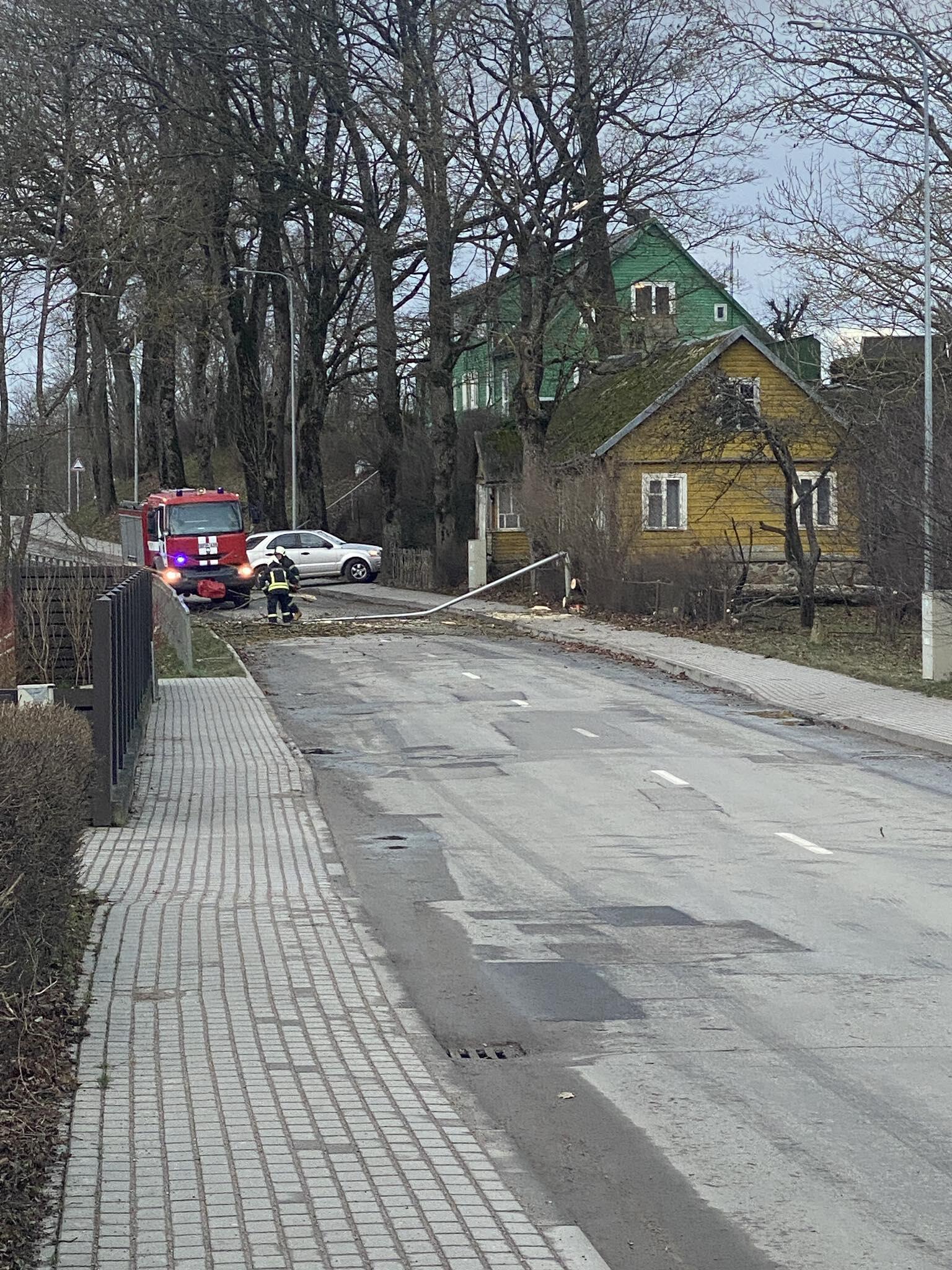Dar pavojingesnė situacija susiklostė Plungėje, kur gruodžio 28 d. Birutės gatvėje, ties 19-uoju namu, vėjas nuvertė medį kartu su stulpu.