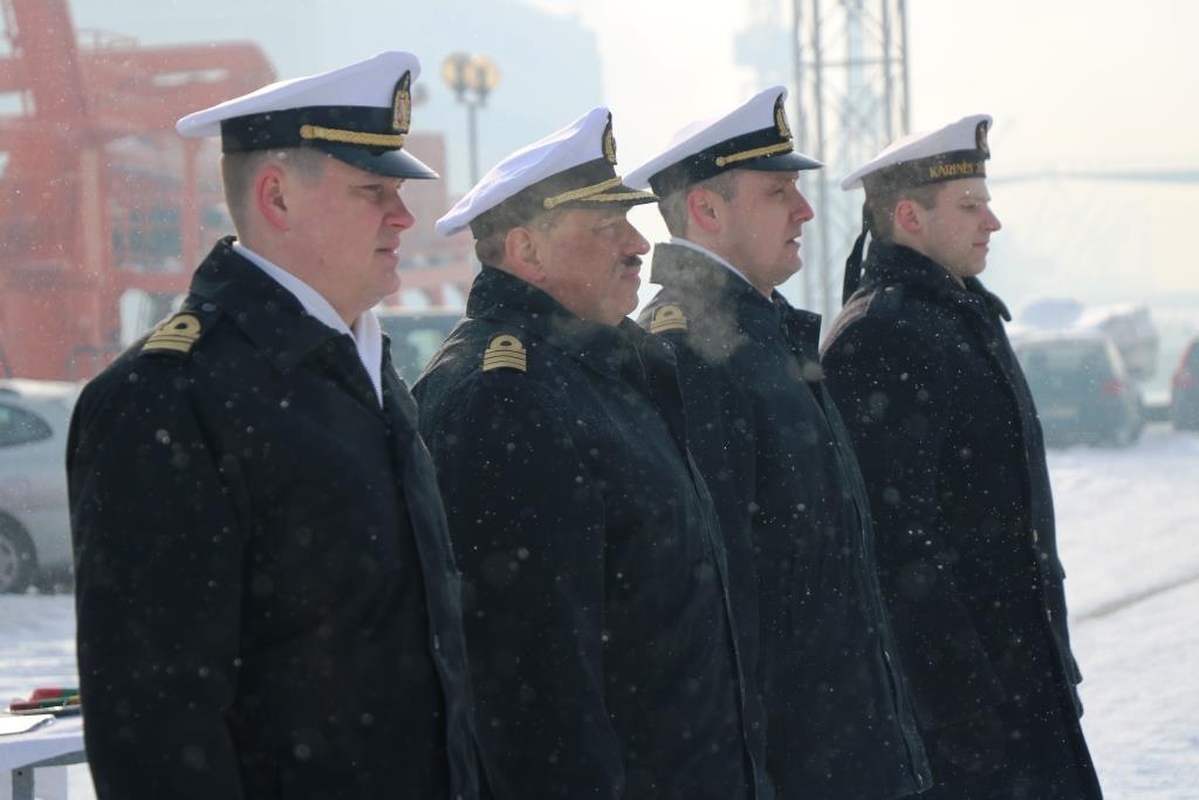 Ceremonijoje dalyvavo Karinių jūrų pajėgų (KJP) vadas jūrų kpt. Arūnas Mockus, Karo laivų flotilės (KLF) vadas kmd. Tomas Skurdenis, Karinių jūrų pajėgų kapelionas kmd. ltn. Remigijus Monstvilas, KJP laivų vadai bei laivo ,,Sūduvis“ įgulos nariai.