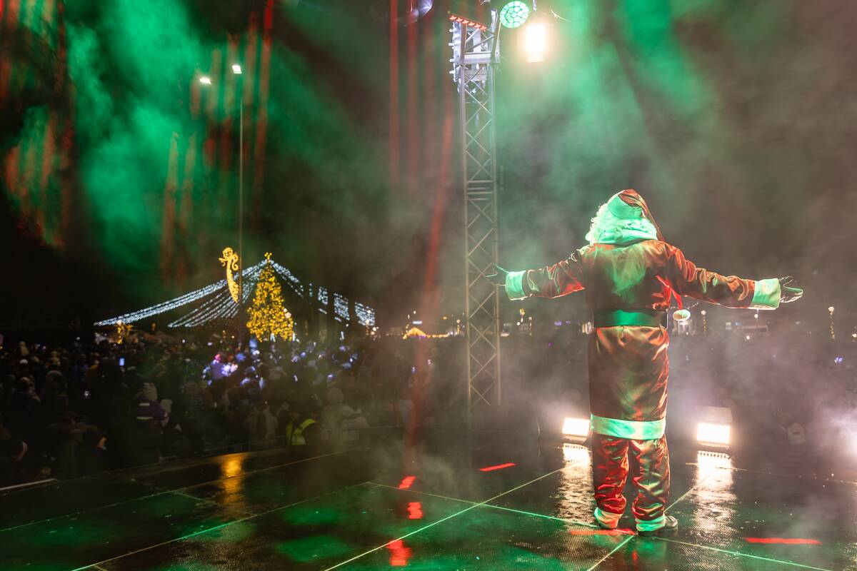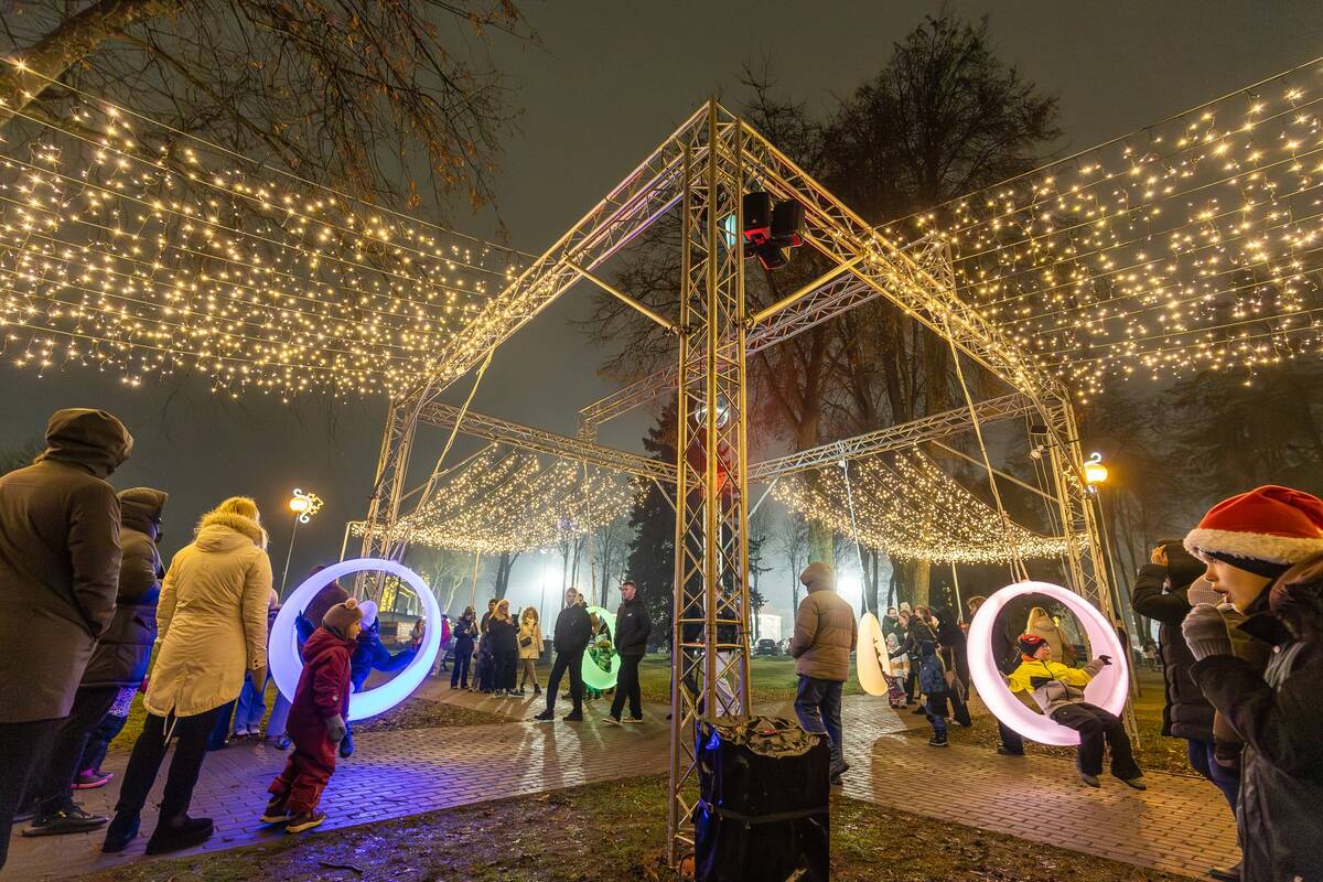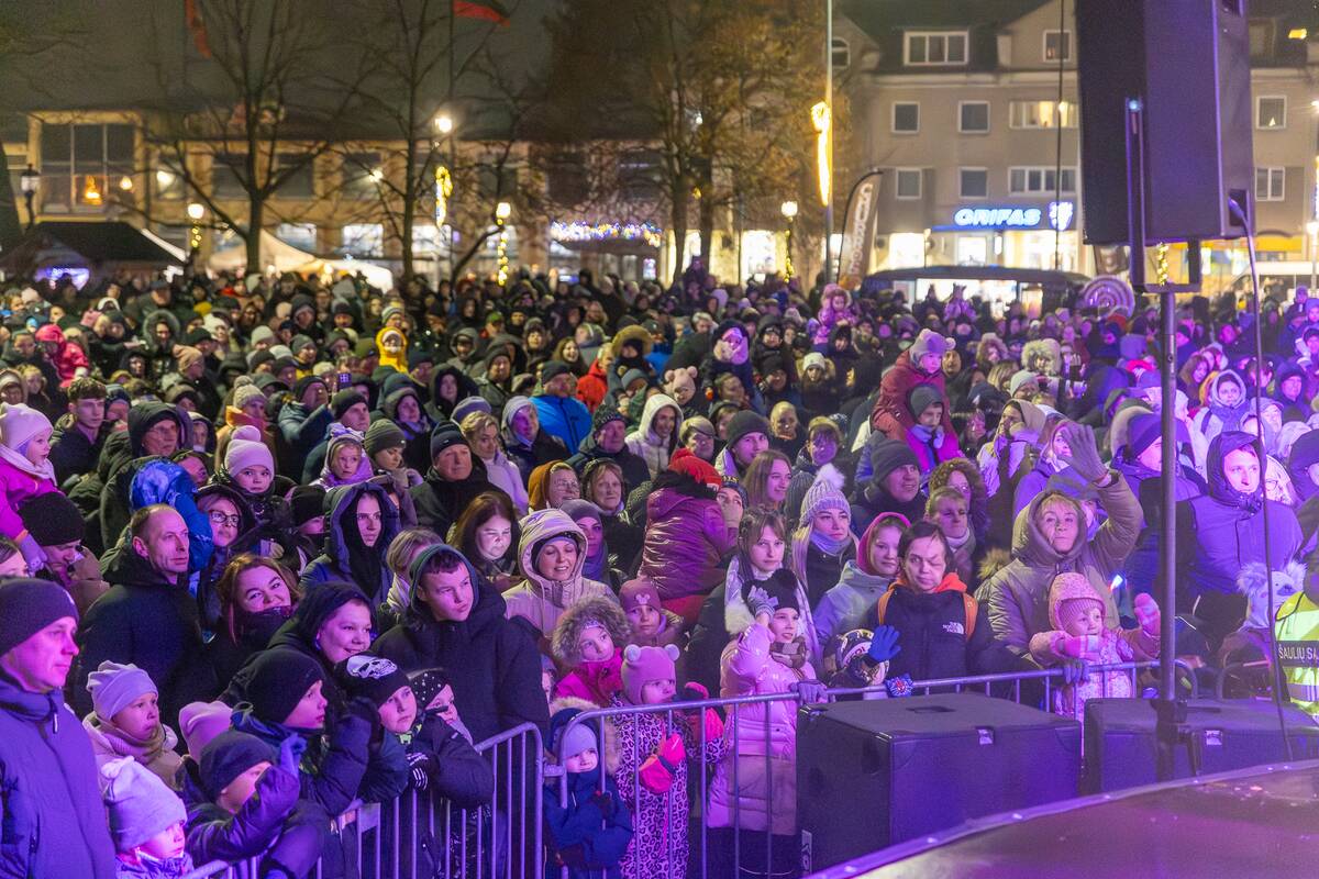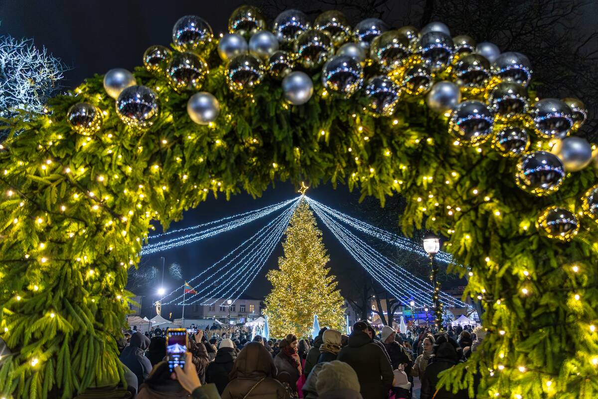 Susirinkusiųjų akis taip pat džiugino ant Rotušės aikštės ketvirtojo pastato atgijusios „Kalėdinės istorijos“, aikštės skverą apgaubusi instaliacija „Šviesų magija“. Tą vakarą aikštė buvo pilna ne tik šviesų ir garsų, bet ir kvapų – arčiau prieiti viliojo iš mugių palapinių sklindantis įvairių gardėsių kvapas.