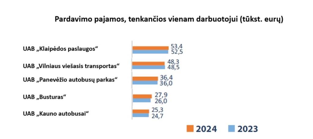 Įmonės pajamos 2024 m. padidėjo 10,7 proc., iki 19,0 mln. eurų (2023 m. – 17,1 mln. eurų). Pajamų augimą daugiausia lėmė keleivių vežimo pajamų padidėjimas 7 proc.