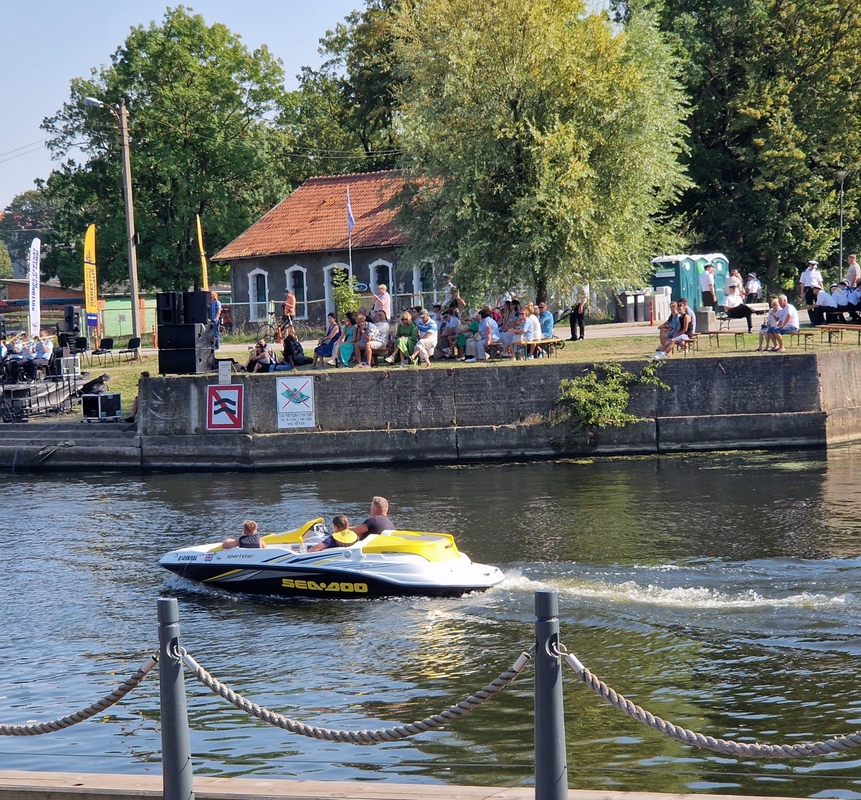 Dalis šventės dalyvių renginį stebi ir iš upės, plaukiodami vandens dviračiais arba vandens autobusu. Juos saugo aplink kursuojantys „Klaipėdos paplūdimių“ gelbėtojai, o krante saugumu rūpinasi policijos pareigūnai.