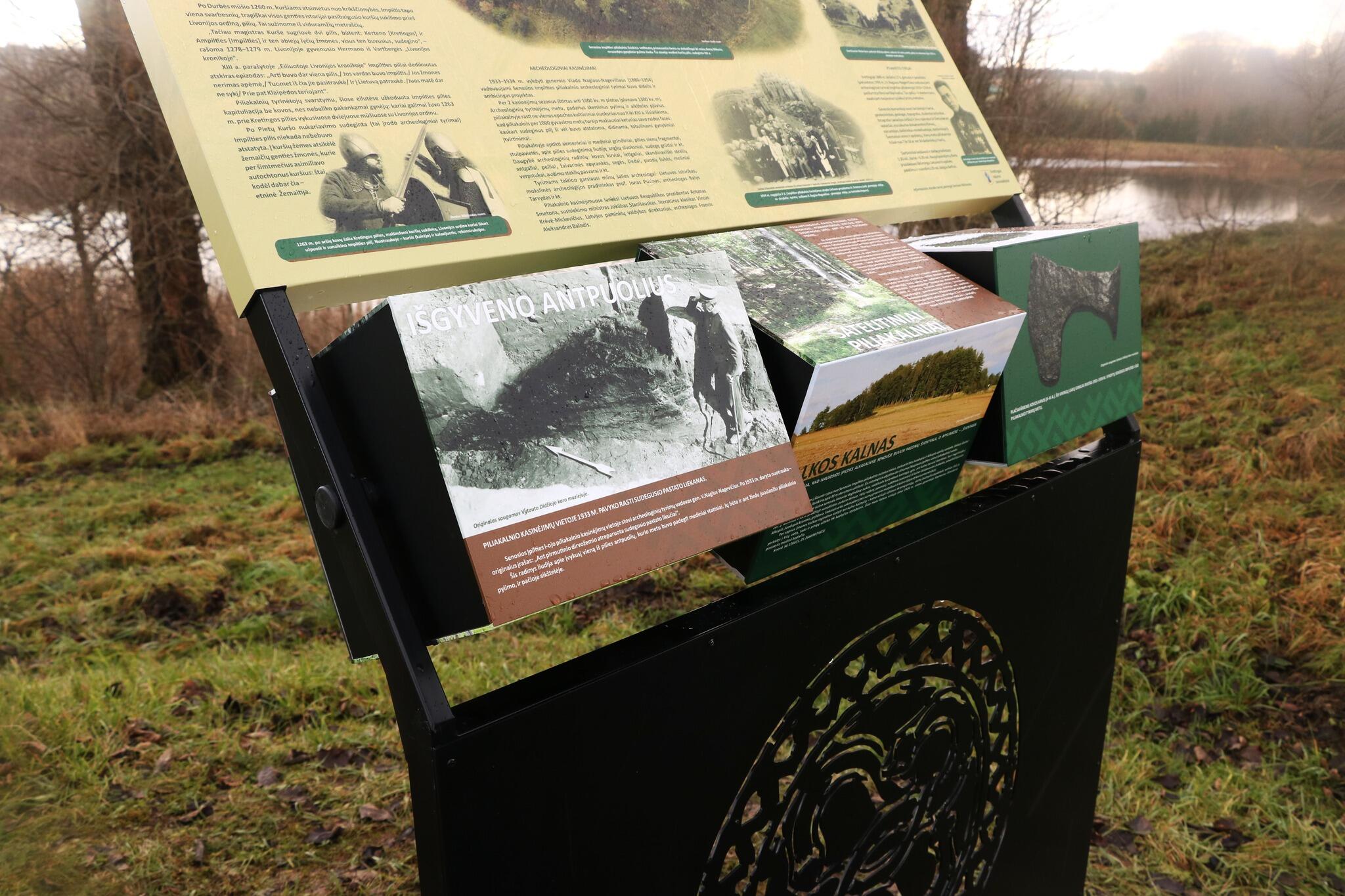 „Nusifotografuoti prie Senosios Impilties piliakalnio tarpukariu specialiai iš Kauno buvo atvykęs net prezidentas Antanas Smetona... Todėl žmonėms bus įdomu išvysti nepaprastai intriguojančią medžiagą naujajame Senosios Impilties piliakalnio stende. Bendradarbiauta su Kretingos, Kauno, Utenos muziejais, privačiais asmenimis. Stende patalpinta informacija ir apie netoliese esančius kitus kuršių piliakalnius, mitologinius, pagoniško kulto objektus“, – pasakojo idėjos autorius ir abiejų stendų turinio kūrėjas, žurnalistas, kraštotyrininkas Denisas Nikitenka.