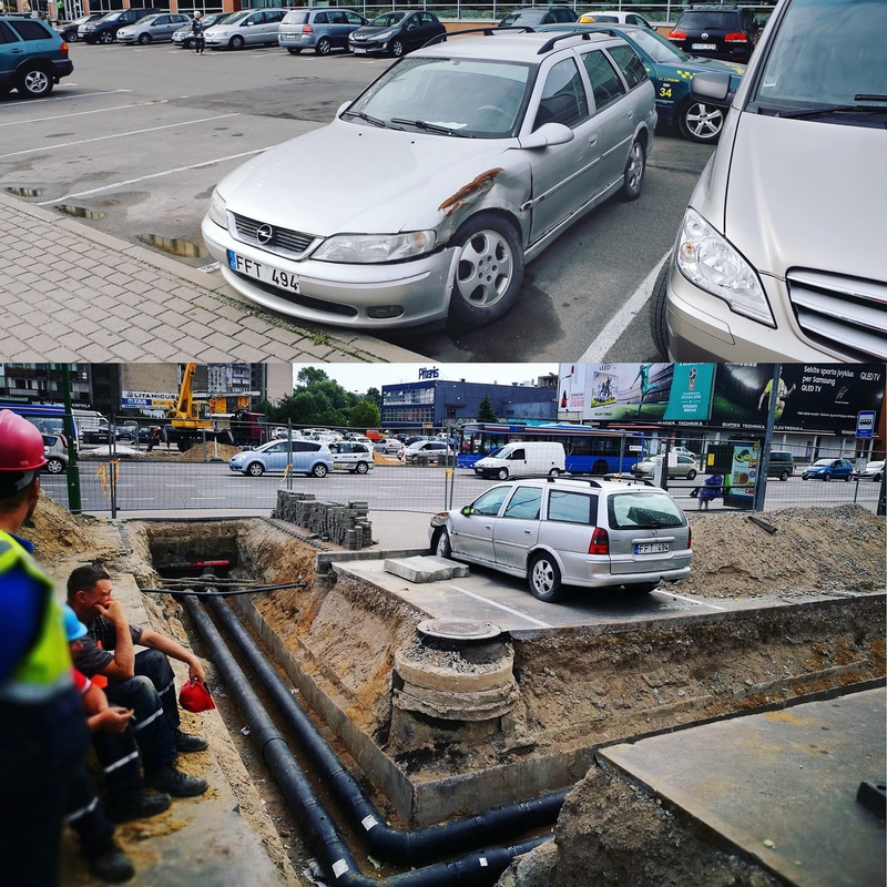 Dar liepą dienraštis rašė apie kuriozinį incidentą – rekonstruojantiems šildymo trasas darbininkams teko apeiti senokai paliktą automobilį.