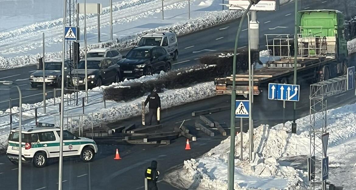 Klaipėdos apskrities vyriausiojo policijos Operatyvaus valdymo skyriaus pareigūnų duomenimis, sausio 14 d., trečiadienį, apie 10.14 val., gautas pranešimas, kad Klaipėdoje, Minijos g. ir Baltijos pr. sankryžoje, nuo sunkiasvorės transporto priemonės nukrito metalinės konstrukcijos ir užtvėrė kelią.
