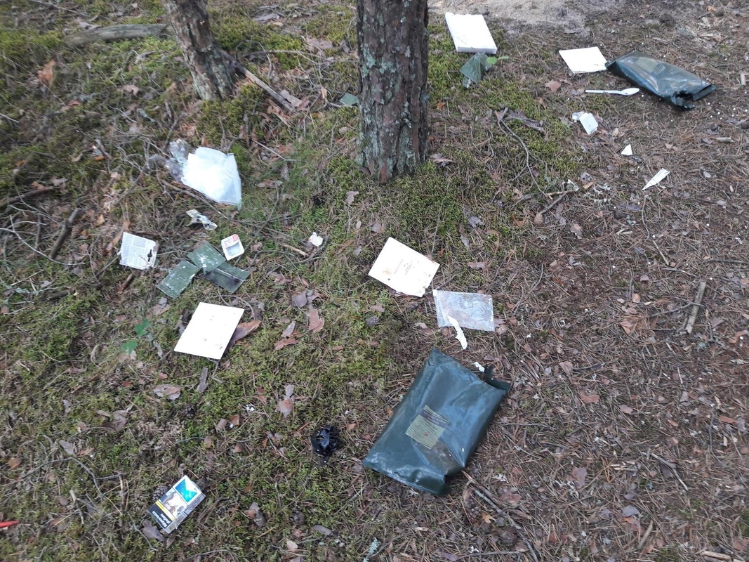 „Mūsų šaunieji kariūnai papietavo. Mes jiems į biudžetą, jie mums į mišką sauso davinio paketus. Puotauta tvora neaptvertoje teritorijoje. Tad gal kokie mėgėjai treniravosi. Tikėtina, kad šiaip pašaudyti atsliūkinę, be sauso davinio gaiduko neįveiktų“, – socialiniame tinkle plūdo klaipėdietis.