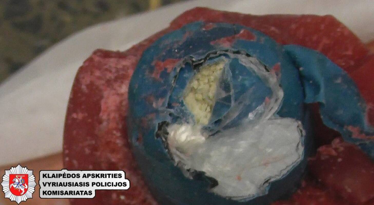 Į žvakę buvo įlydytas maišelis su 150 gramų, įtariama, heroino. Taip pat rasti trys mobilieji telefonai, dvi SIM kortelės ir vienkartiniai švirkštai su adatomis.