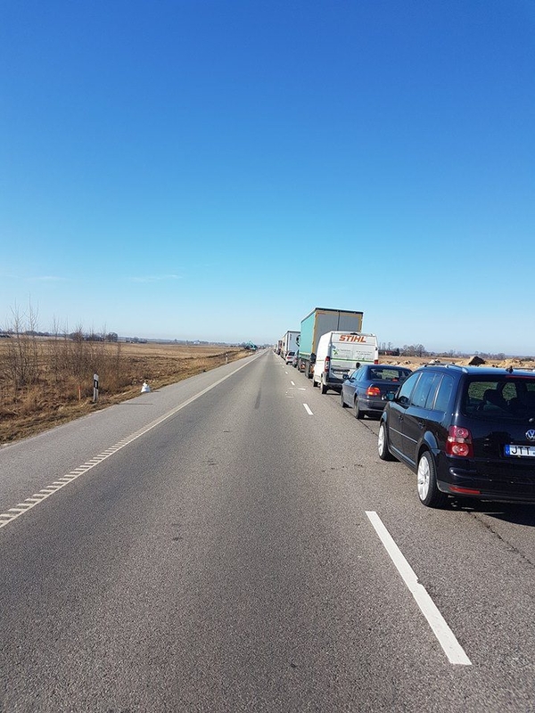 Socialiniame tinklalapyje "Facebook" internautai ėmė dalytis informacija, kad 10 val. ryto magistraliniame kelyje A5, jungiančiame Kauną, Marijampolę ir Suvalkus, susiformavo milžiniškos eismo spūstys.