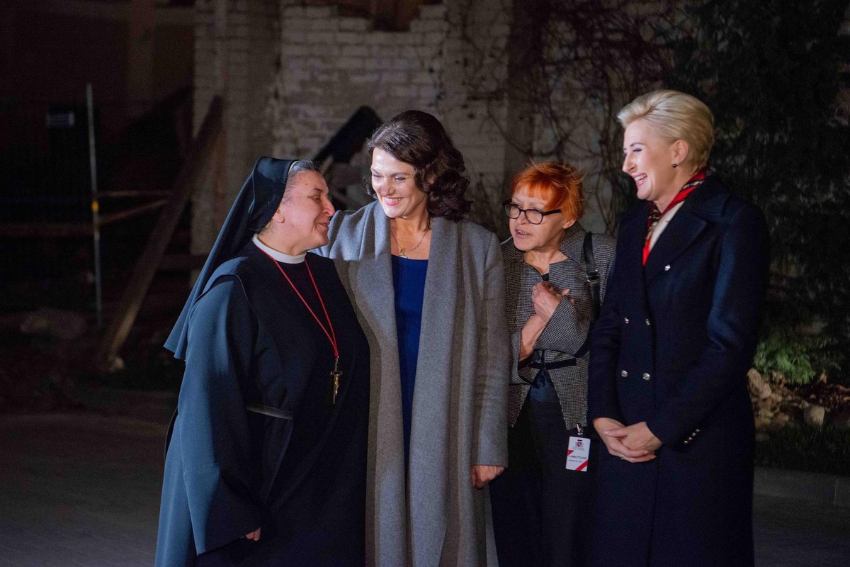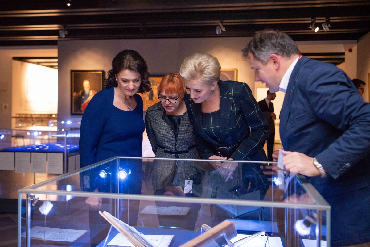 Lietuvos ir Lenkijos pirmosios ponios su didžiuliu susidomėjimu klausėsi Valdovų rūmų direktoriaus Vydo Dolinsko pasakojimo apie čia eksponuojamus materialius istorijos ženklus, suvežtus iš Lietuvos, Lenkijos, Ukrainos, Baltarusijos, Vokietijos, Prancūzijos ir Jeruzalės.