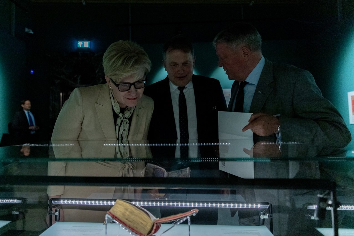 Vyriausybės vadovė padėkojo Miuncheno universiteto bibliotekai už maldyno saugojimą ir bendradarbiavimą su Nacionaliniu muziejumi – LDK valdovų rūmais, taip pat visiems prisidėjusiems prie parodos įgyvendinimo.