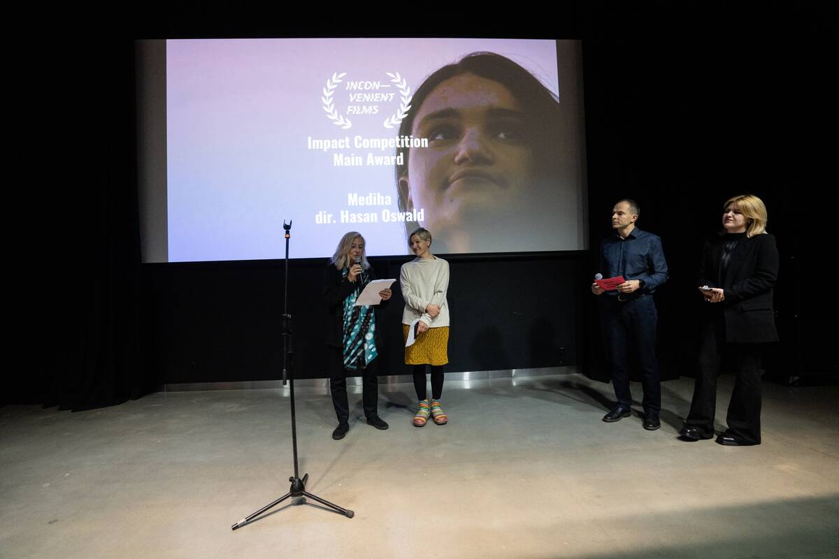 „Nepatogaus kino“ Poveikio konkursinės programos žiuri teigė apsisprendusi vienbalsiai ir geriausio filmo apdovanojimą įteikė režisieriaus Hasan Oswald kūriniui „Medicha“. „Filme pasakojama itin asmeniška jaunos moteris, išgyvenusios ISIS vergiją, istorija. Jos balso ir vaizdo dienoraščiai atskleidžia ir jos traumą, ir nuolatines teisingumo paieškas. Tai nepaprastai įtaigi istorija apie stiprybę, meilę ir viltį, net kai atrodo, kad visos viltys – prarastos“, – įteikdama apdovanojimą sakė žiuri.