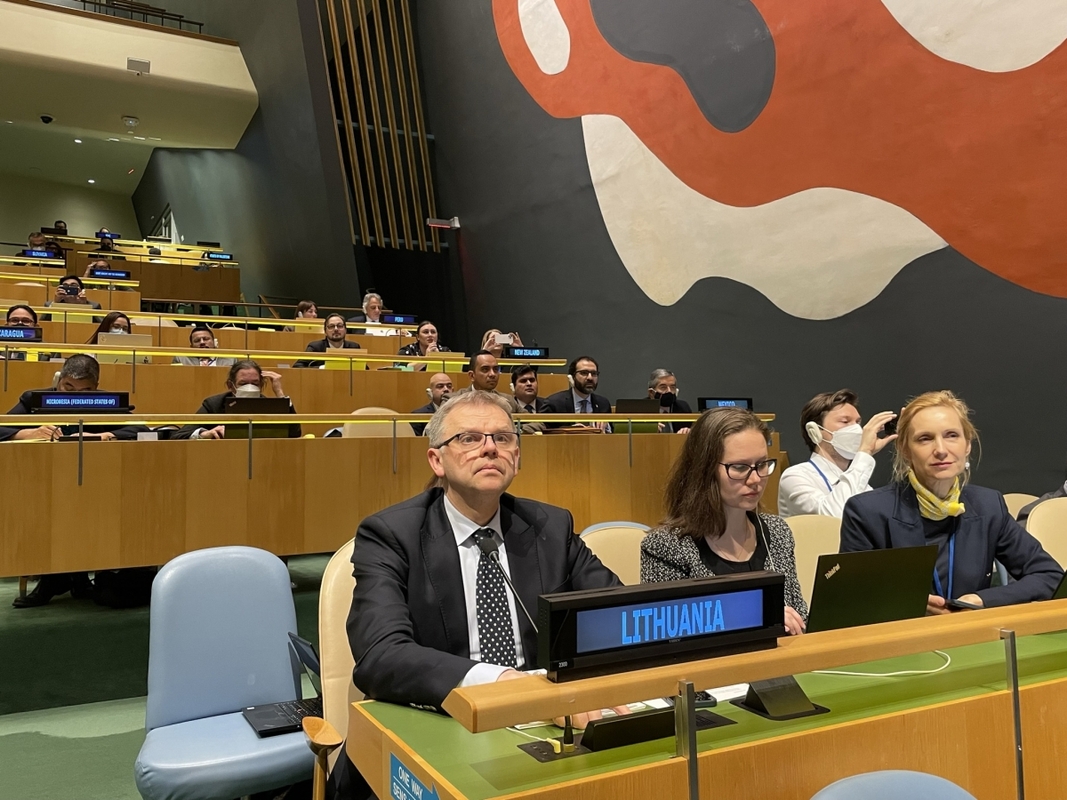 „Rusija ir jos bendrininkė Baltarusija yra visiškai atsakingos už karą ir humanitarinę krizę. Siunčiame aiškią žinią Rusijai: reikalaujame griežtai laikytis tarptautinės teisės, o tai pat – saugoti civilius, užtikrinti savalaikę ir netrukdomą humanitarinės pagalbos prieigą ir humanitarinės pagalbos personalo saugumą“, – pažymėjo sesijos bendruosiuose debatuose aštuonių Šiaurės ir Baltijos valstybių (NB8) vardu pasisakęs Lietuvos nuolatinis atstovas JT ambasadorius Rytis Paulauskas.