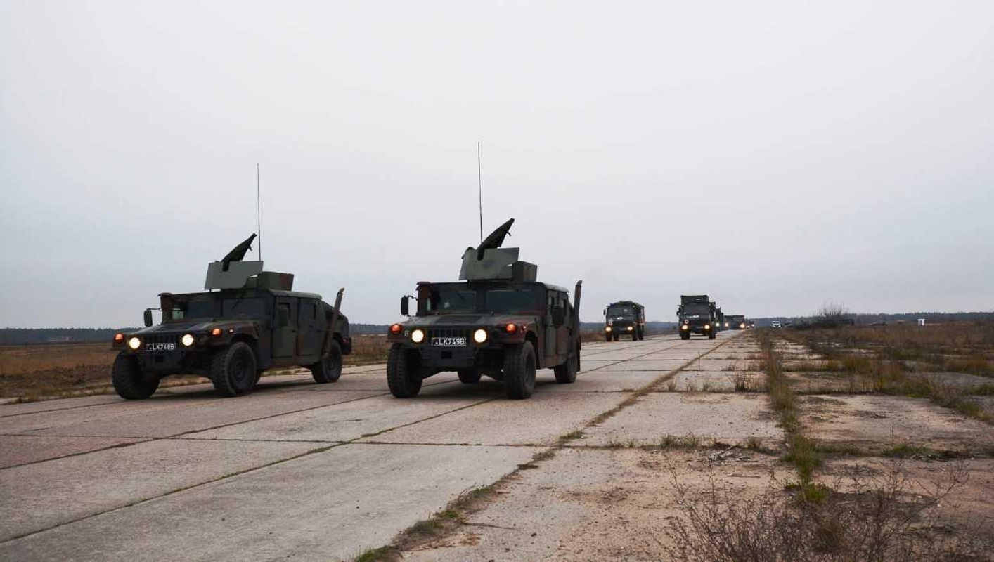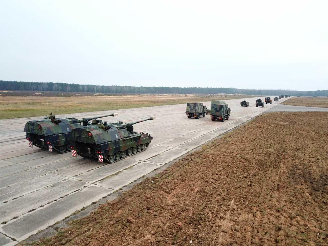 Į poligone esantį pakilimo taką išriedėjo renginyje dalyvausianti Lietuvos ir sąjungininkų karinė technika - visureigiai, motociklai pėstininkų kovos mašinos, šarvuočiai, tankai ir kt.