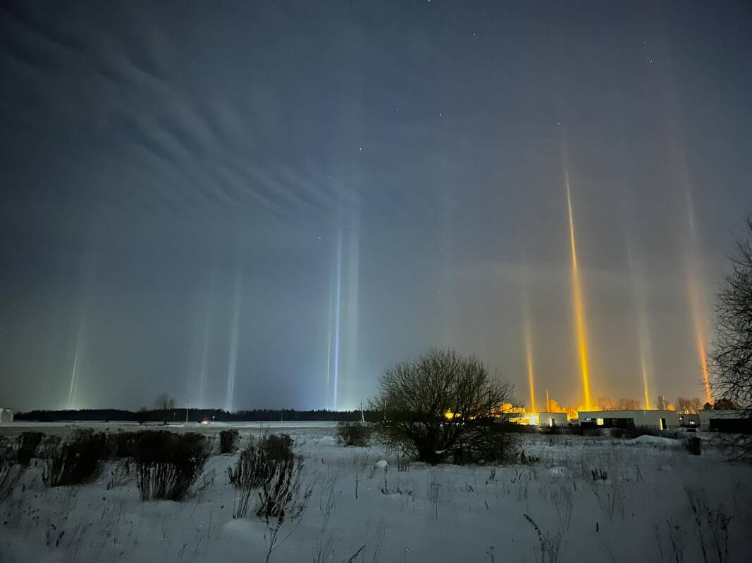 „Išeikit į lauką ir galbūt pamatysite tai, ko dar nesate matę. Tai – šviesos stulpai, – šeštadienio vakarą mokslo svetainėje „Orai ir klimatas Lietuvoje“ rašė meteorologas Gytis Valaika. – Prieš keliolika metų gerai pamenu, kad apie šį reiškinį spaudoje neretai būdavo rašoma kaip apie kažkokią retenybę, kuri pasitaiko tik Arkties regione, Sibire ar Kanadoje. Šis reiškinys nėra toks ypatingai retas ir būna net pas mus Lietuvoje. Viskas, ko reikia, tai -10 °C ar didesnio šalčio ir ore plūduriuojančių labai mažų plokštelės formos šešiakampių snaigelių (oras tuo metu gali blizgėti)“ .