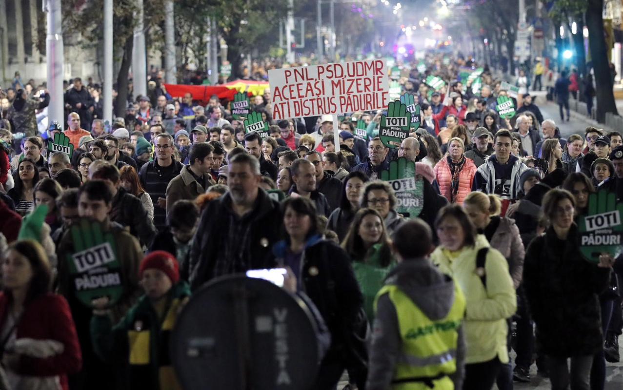 Bukarešte maždaug 4 tūkst. žmonių žygiavo vandenų ir miškų ministerijos link, mušdami būgnais ir šaukdami „Mūsų miškas nėra jūsų prekė“ ir „Vagys“.