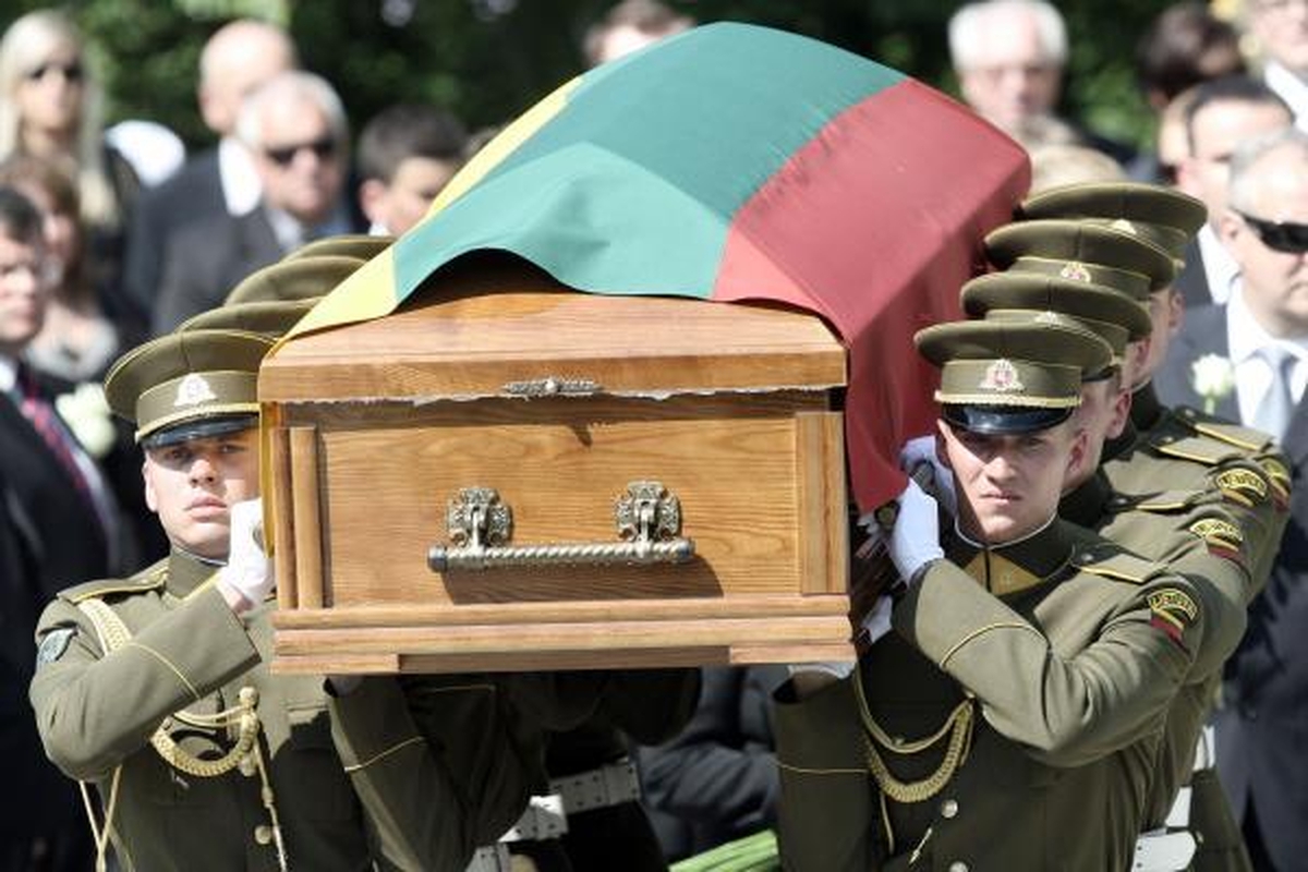 Kapas uždengtas iš šiomis dienomis žmonių į Prezidentūrą atneštų gyvų baltų gėlių nupintais kilimais. Gedulingą ceremoniją užbaigė Lietuvos himnas.