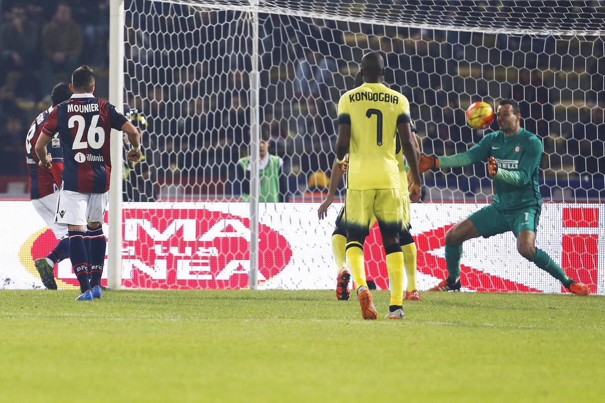 Šeštą pergalę pirmosiose Italijos aukščiausiosios futbolo lygos (Serie A) dešimtojo turo rungtynėse iškovojo bei dvidešimties komandų turnyro lyderiu tapo Milano "Inter" (21 tšk.) klubas, antradienį svečiuose 1:0 (0:0) įveikęs aštuonioliktojoje pozicijoje esančius "Bologna" (6 tšk.) futbolininkus.