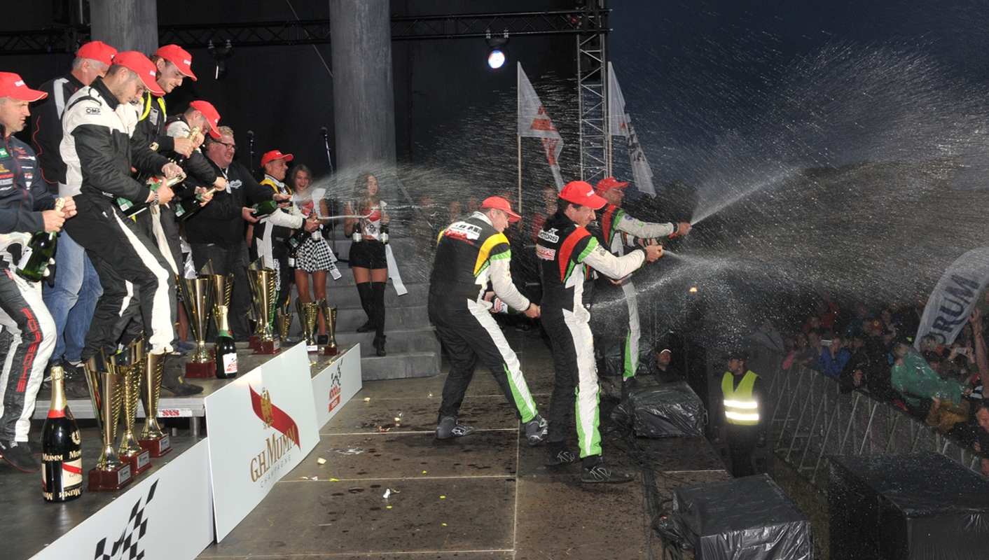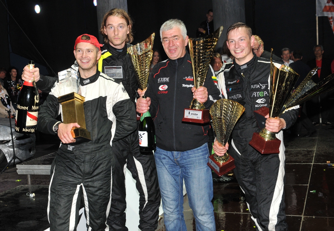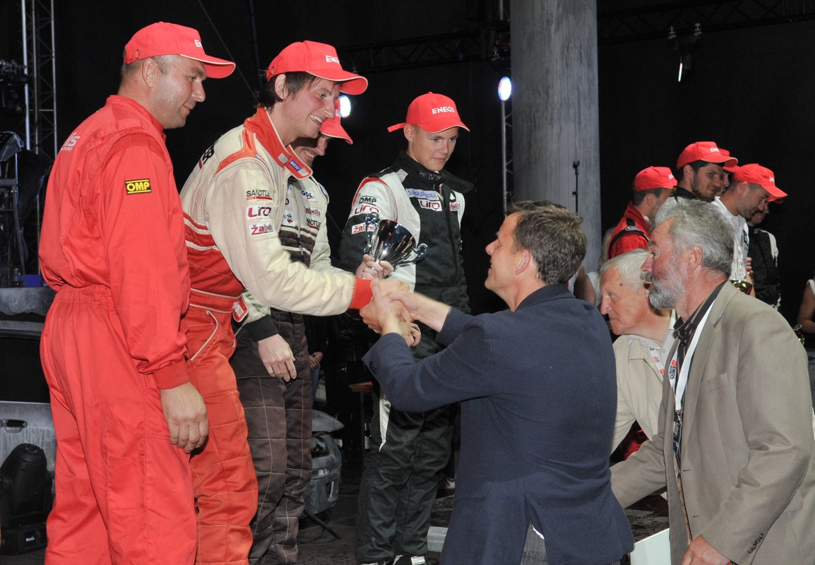 Nugalėtojų komandos narį, 29-erių Tautvydą Barštį ir jo atvairuotą „Porsche Carrera GT3 Cup“, iškart po pergalingo finišo apspito puolę sveikinti draugai ir gerbėjai.