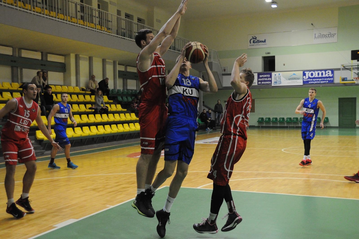 Įtemptų rungtynių šou ir sugebėjimą išsigelbėti paskutinę dvikovos sekundę vėl pademonstravo LSKL vicečempionai Lietuvos sporto universiteto (LSU) krepšininkai. Šįkart Edo Nickaus auklėtiniai Klaipėdoje rezultatu 80:79 (25:17, 16:19, 15:14, 24:29) nugalėjo Klaipėdos universiteto (KU) ekipą.