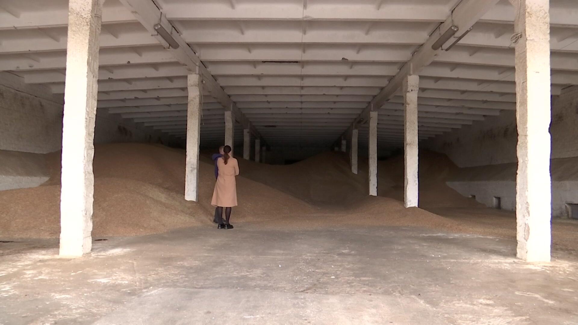 Ūkininkas Edas Sasnauskas rodė žiemai paruoštus, į maišus supilstytus grūdus, kuriuos naudos šildymui.
