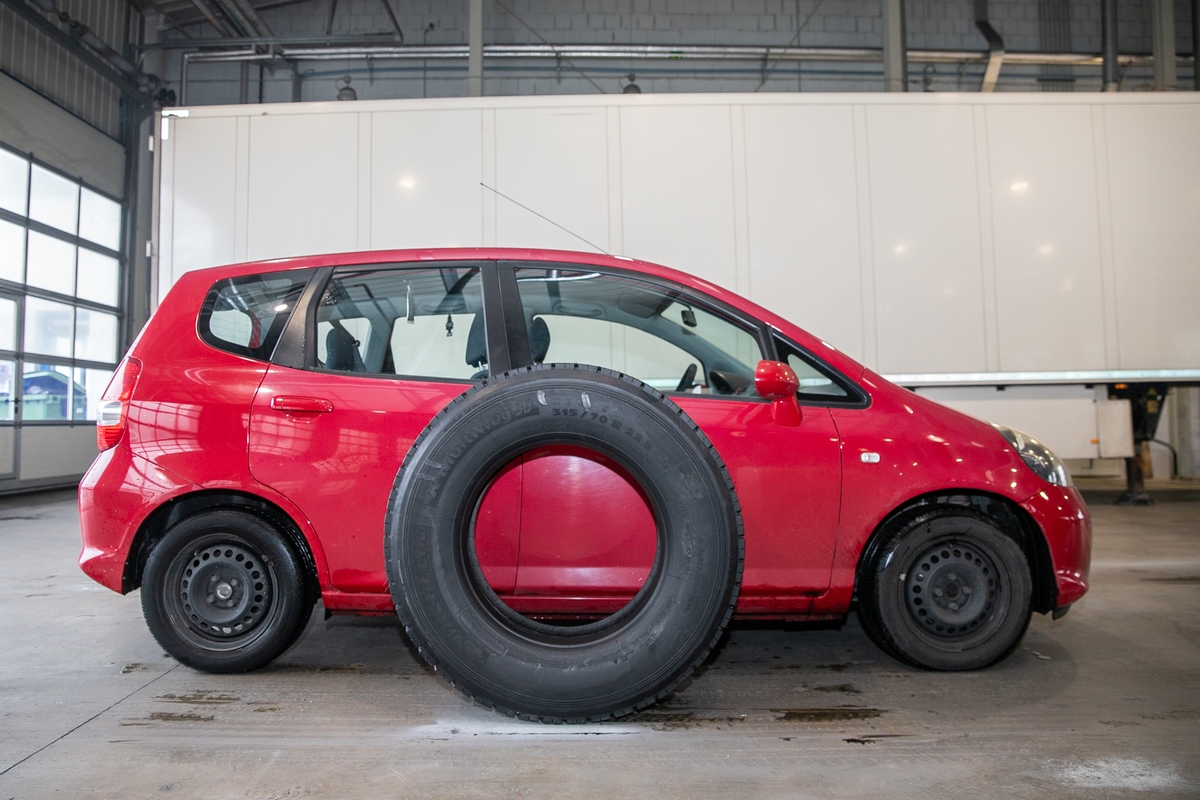 Kontrastas: įprastinio ir sunkiojo transporto padangų bei įrankių masteliai skiriasi ne procentais, o kartais.
