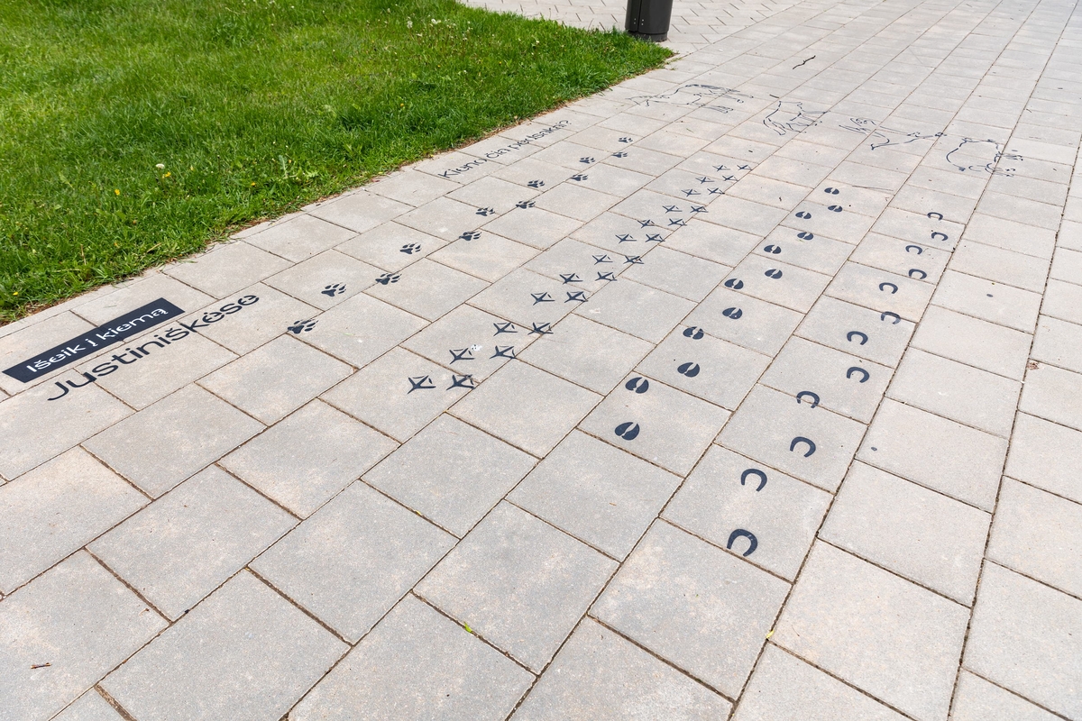 Justiniškių Šypsenų alėjoje nuo Vilniaus „Sietuvos“ progimnazijos iki turgaus lauks penkios skirtingos stotelės vaikams su užduotimis: šuoliuoti kaip elniui, įveikti katino iššūkį, atspėti gyvūnų pėdsakų mįslę, šokinėti klases, nuspalvinti paukščius. Nenuostabu, kad visos jos susijusios su gyvūnais – projekto idėją įkvėpė būtent šiame rajone gyvenęs žymus gamtininkas Ričardas Kazlauskas. Jo butas netoli Šypsenų alėjos priminė džiungles ir buvo tapęs namais šimtams gyvūnų.