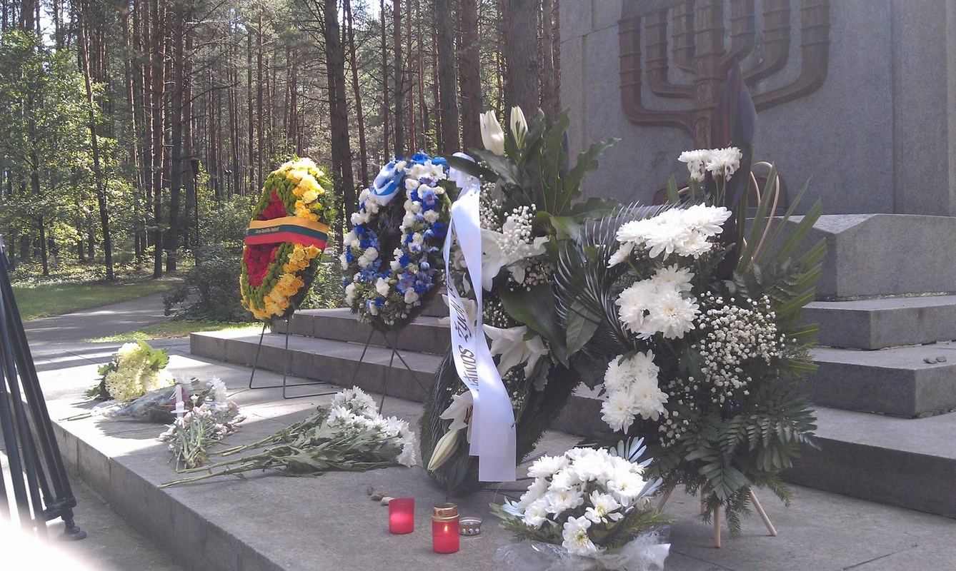 Skambant liūdnai muzikai, abiejų valstybių vadovai prie memorialo paliko po vainiką. Dar vieną padėjo nacių koncentracijos stovyklų baisumus išgyvenę Lietuvos žydų bendruomenės nariai.